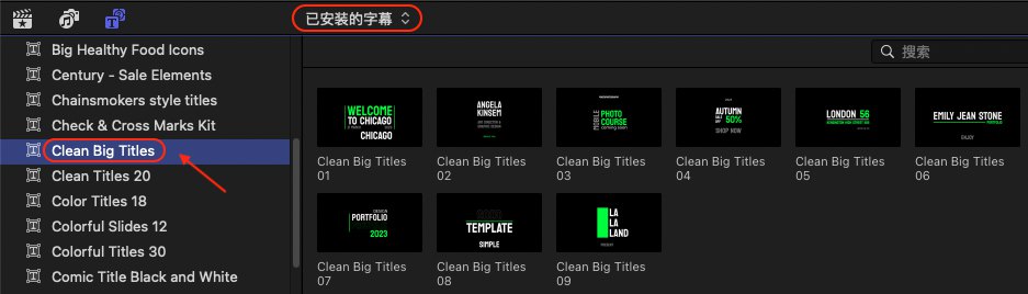 Clean Big Titles 是一组包含9种现代风格的文字标题动画预设,带出入动画,可以自定义修改文字,大小等参数,支持中文输入,支持4K。
