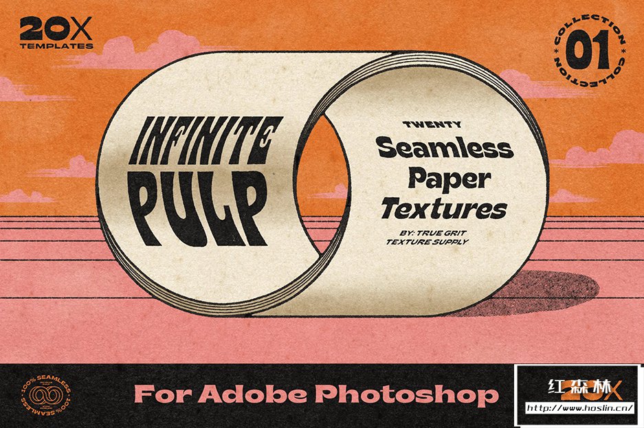 使用 Infinite Pulp 为您的数字作品增添深度和模拟温暖感,Infinite Pulp 是 Adobe Photoshop 必备的包含 20 个无缝纸张纹理模板的库。
