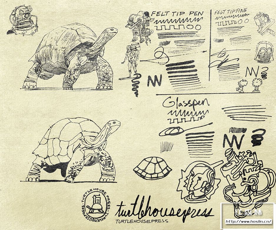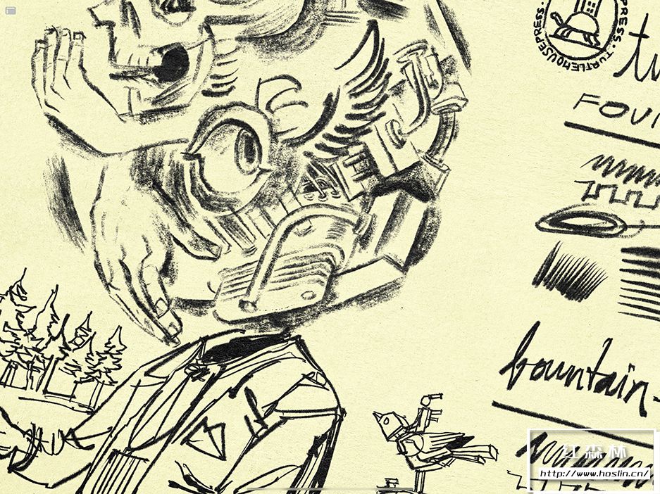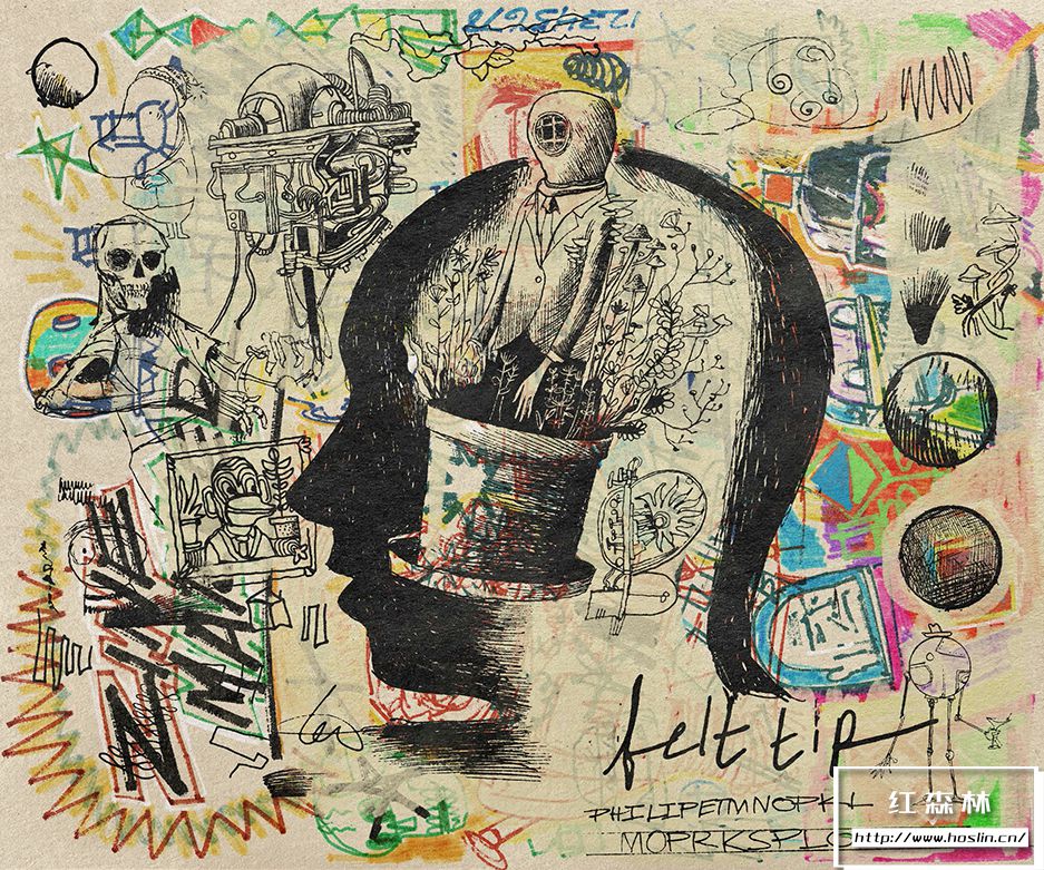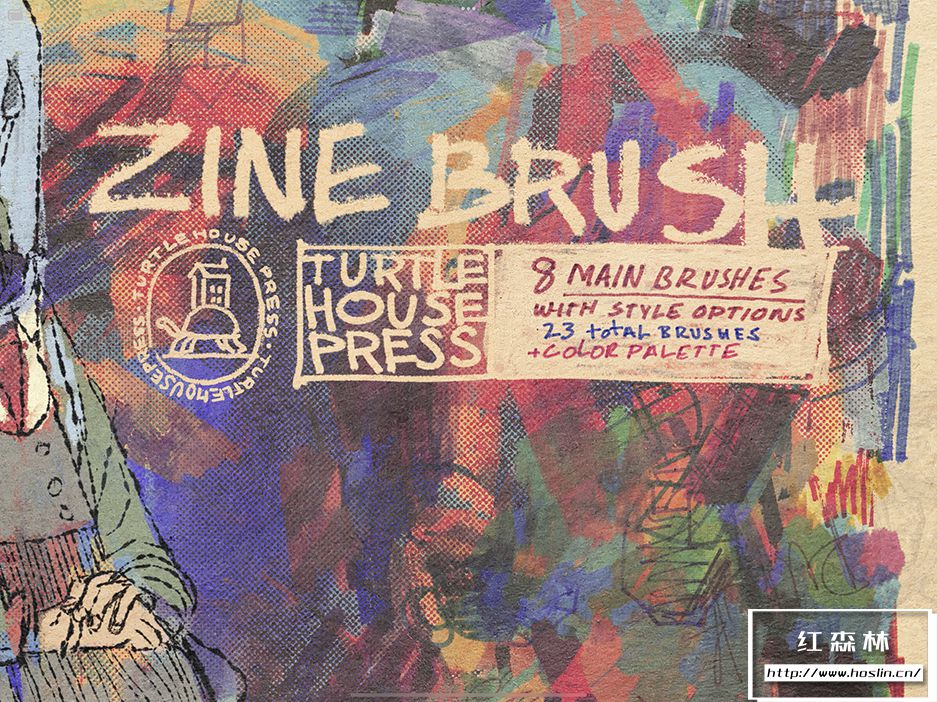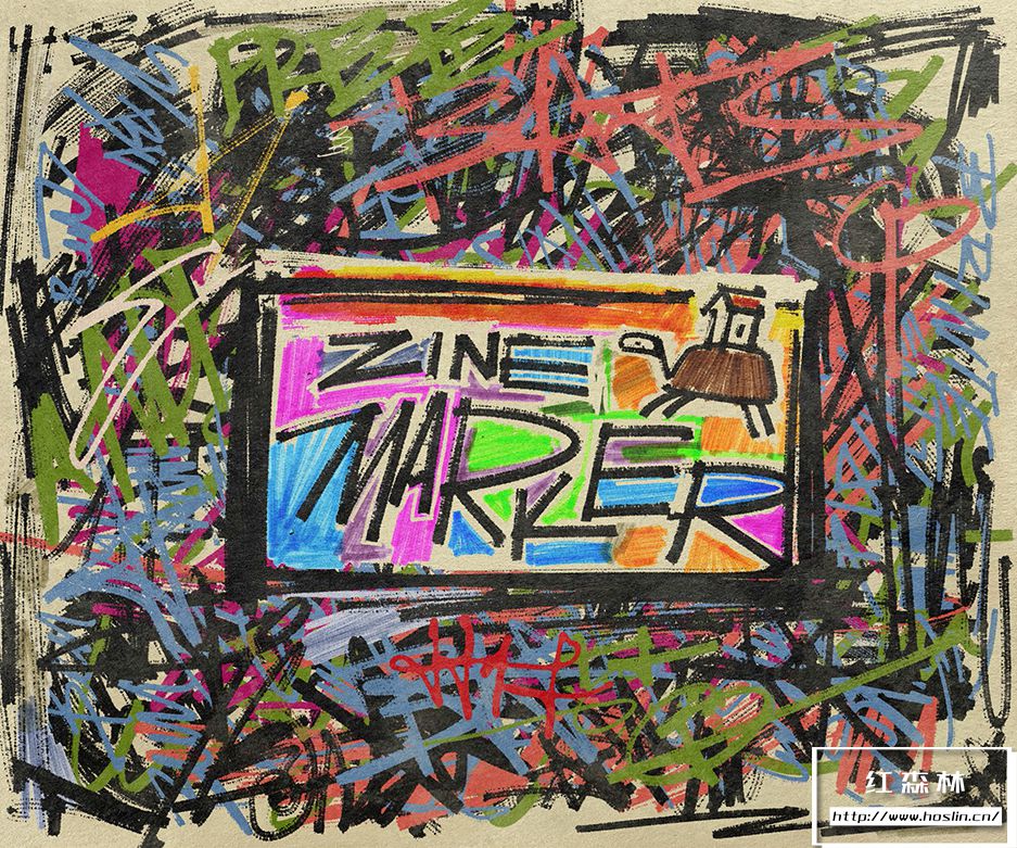 我认为用它们绘画的行为与其他笔不同 – 我制作了玻璃笔和毡尖笔,以便在角落里有一点出血。如果你把笔放在纸上 – 当你在刚刚做的标记上画一条线时,它就会像真正的墨水一样渗到纸上。大多数这些画笔的边缘都没有锯齿 – 但它们是高分辨率的 – 这样,选择就干净,并且我在构建丝网印刷分色时使用其中一些,所以我想要非常清晰的边缘。而且,它们看起来更像是影印的 – 杂志风格,我喜欢这一点。彩色 Zine 记号笔具有独特的颜色堆积,使东西看起来非常手工制作 – 我提供了一些记号笔托盘来帮助绘制较浅的颜色以及一些有关如何使用它们的说明。