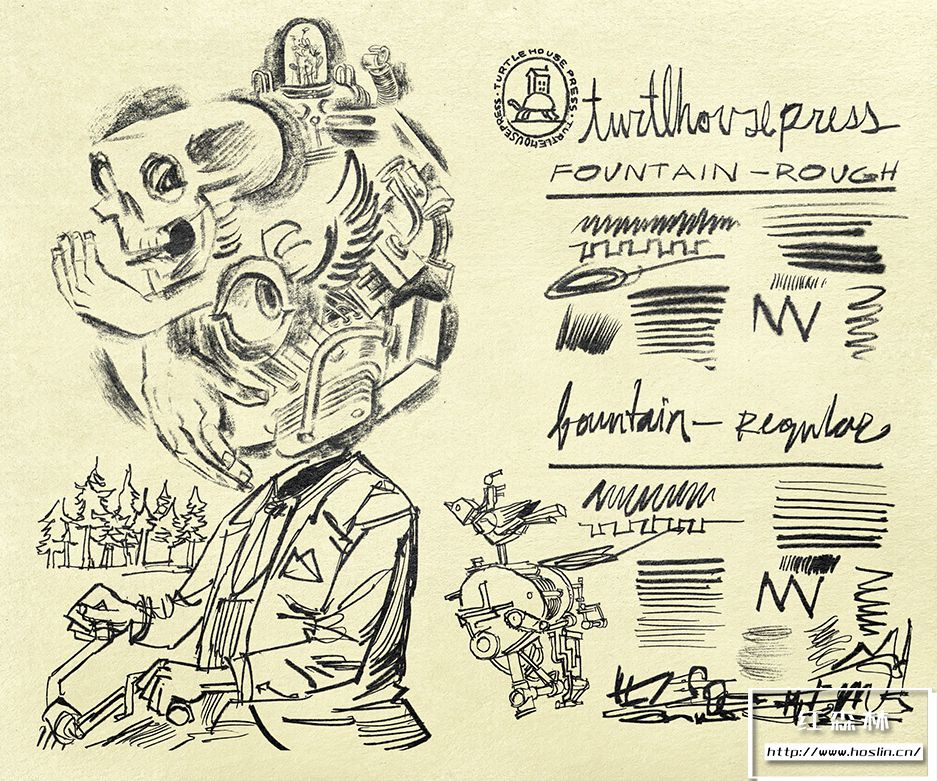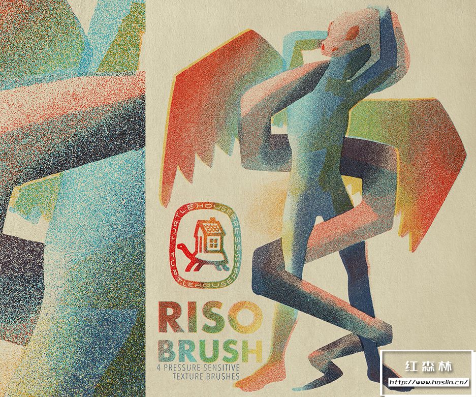 我还附上了一个带有纸张纹理的文件。你可以在网上找到很多这样的内容,所以我没有包括更多。我的目标是在 proreproductive 中使用尽可能少的画笔,它们都做一些独特的事情,所以我试图在这里简化迭代次数。这就是为什么我没有大量的水彩画或书法笔 – 已经有很多了 – 我希望这些是不同的,我只是没有在野外看到它们。当我在构建我的 Risograph 画笔时,我看到几个更著名的画笔生产商发布了一些;我的是压敏的,而不是为每个百分比的不透明度使用刷子 – 所以非常灵活。并且有四种独特的 riso 纹理 – 重迭看起来会更逼真。