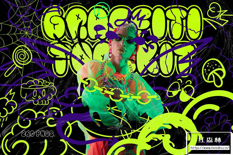隆重推出包含 260 个独特手绘图形的涂鸦工具包!这个多功能工具包是所有创意项目的必备工具。无论您是制作令人惊叹的海报、迷人的专辑封面、令人惊叹的照片还是时尚的街头服饰设计,涂鸦工具包都能满足您的需求。