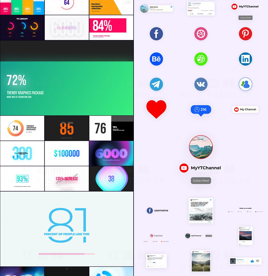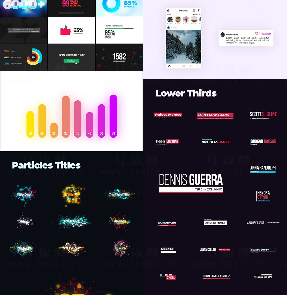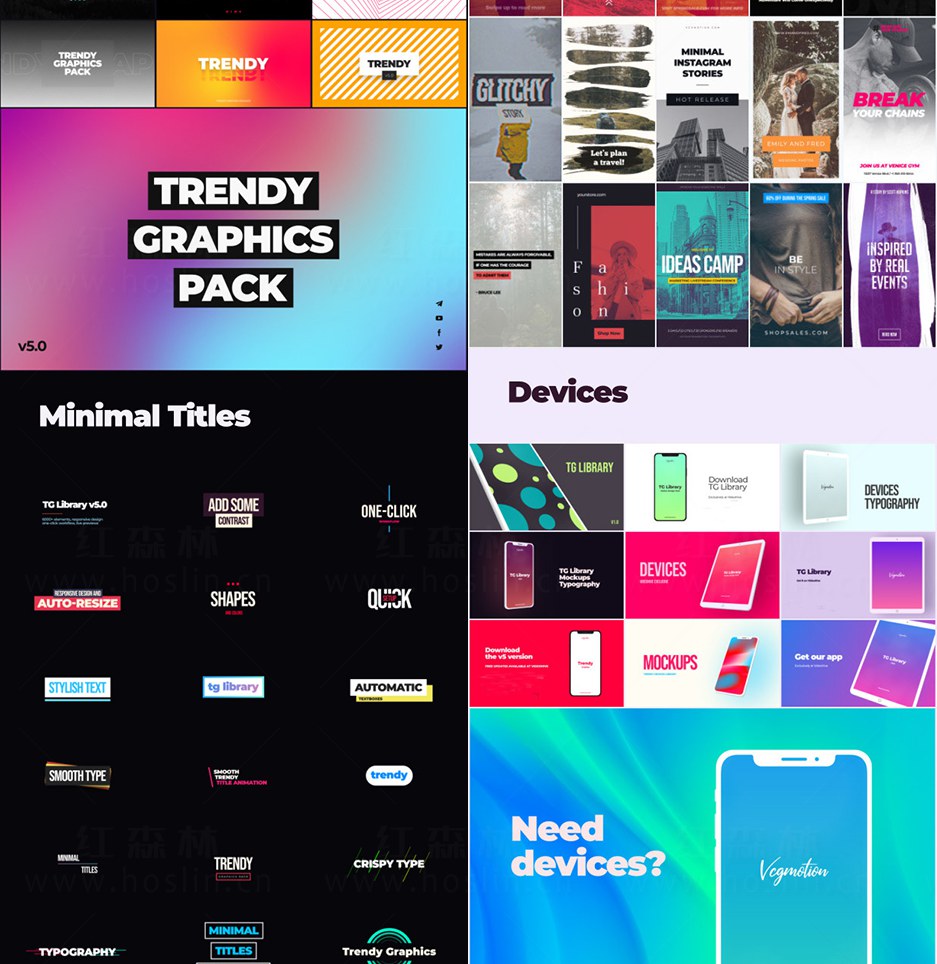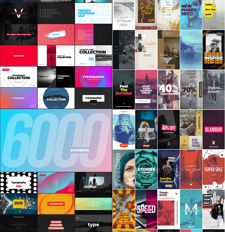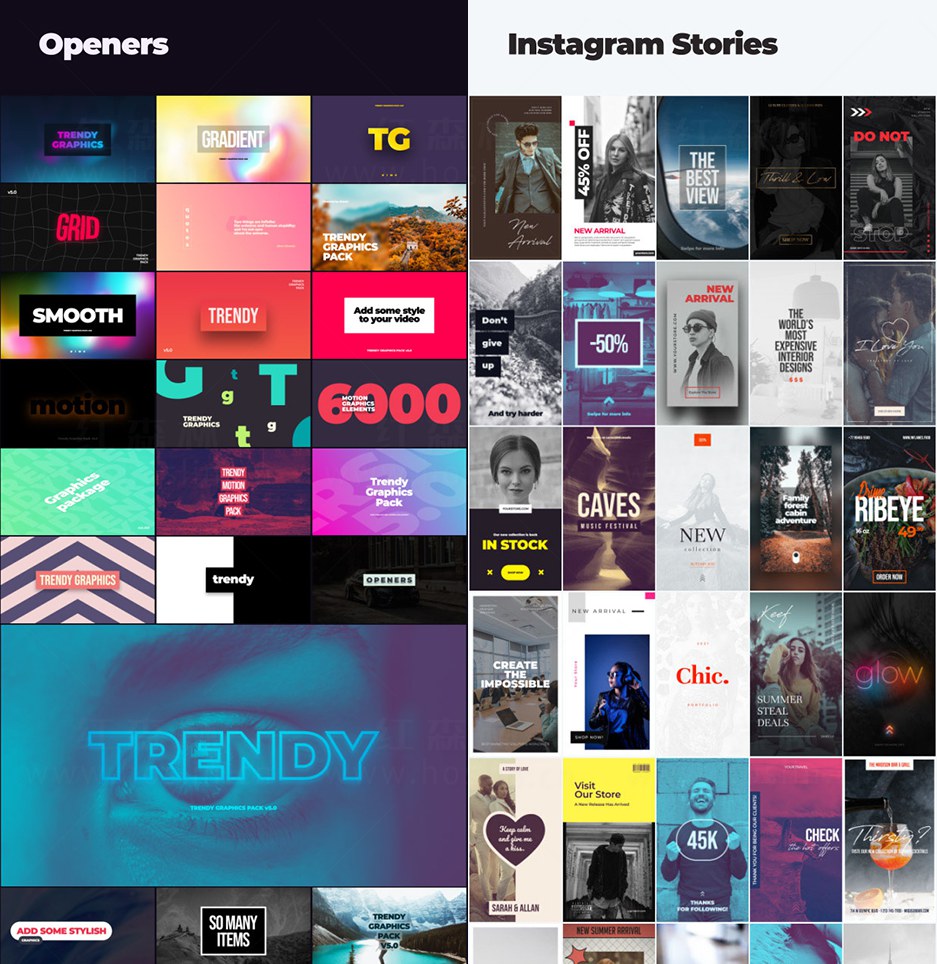 Trendy Graphics Pack 更新到v8版本:The Bundle – 8000+ Motion Elements,现在拥有包含8000组动画预设,包括1465组文字标题、1634组视频转场、1138组图形动画、1061组背景素材、689组信号损坏元素、428组竖屏包装、739组宣传片头开场展示、825组视频特效、609组音效等,通过AtomX3.0.8脚本来生成调用(已包含),需要什么效果直接生成即可,使用十分简单。选择任何图层,添加预设即可。无需关键帧。所有的文字、字体、数值、颜色、大小、宽度等都可以修改。