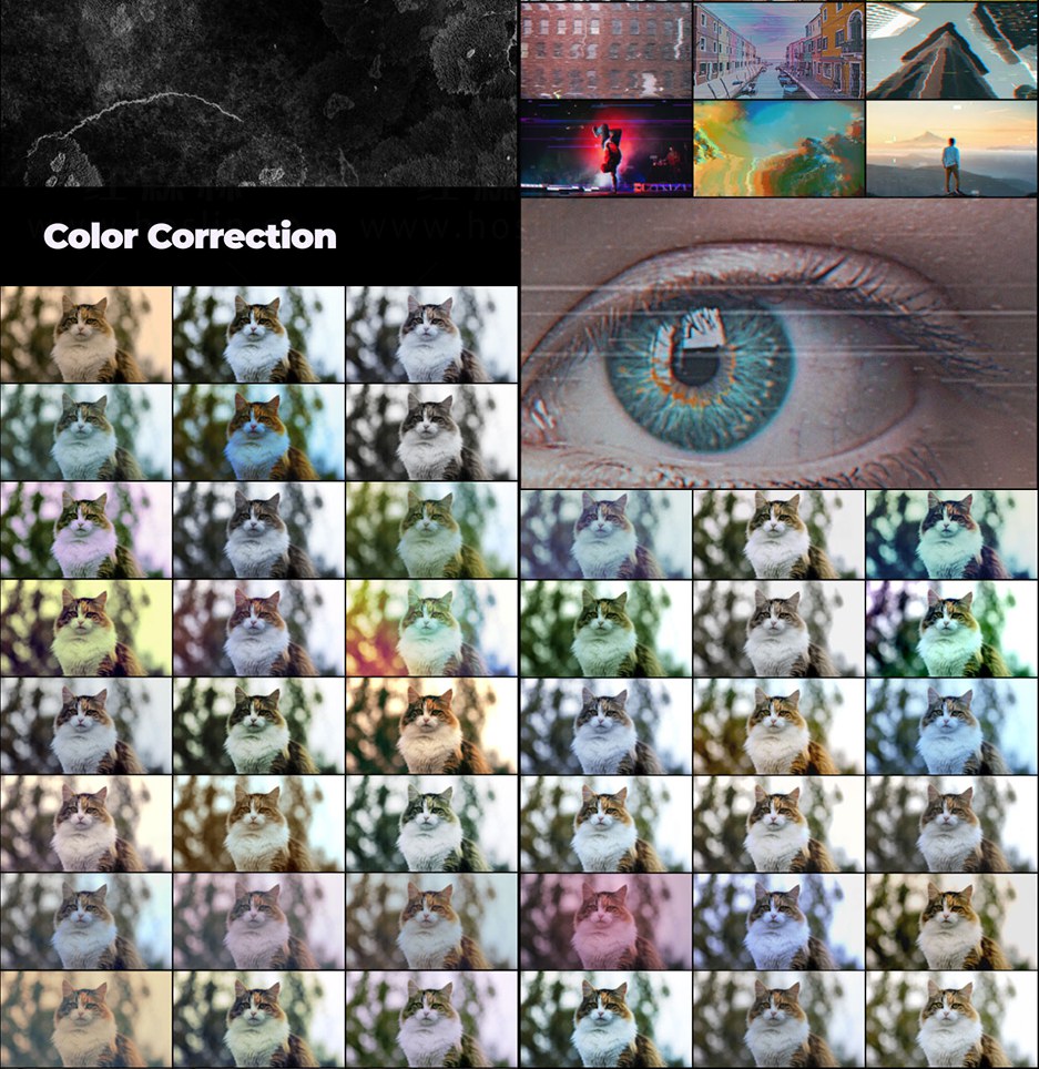 - 叠加 – 颜色校正、故障、垃圾、粒子、光线