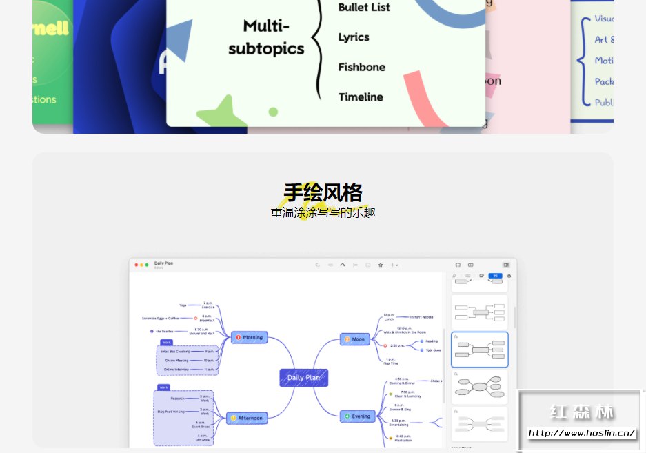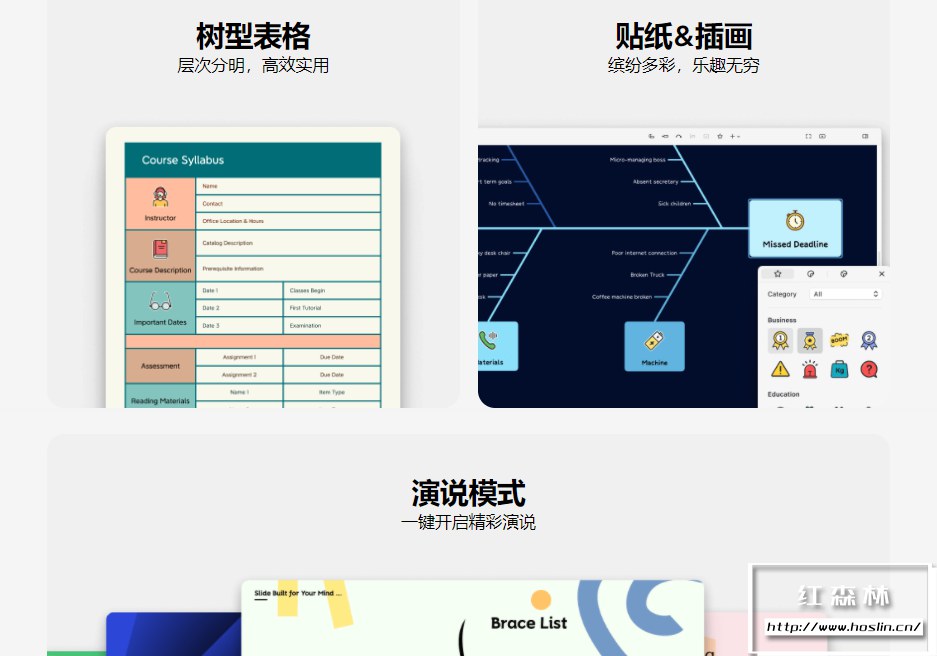 • 结构化呈现想法:利用合适的导图结构将模糊的观点具体化,将抽象的思维变成可执行的计划。通过充分的深度思考,跨越想到和做到的巨大鸿沟,让想法真正落地。