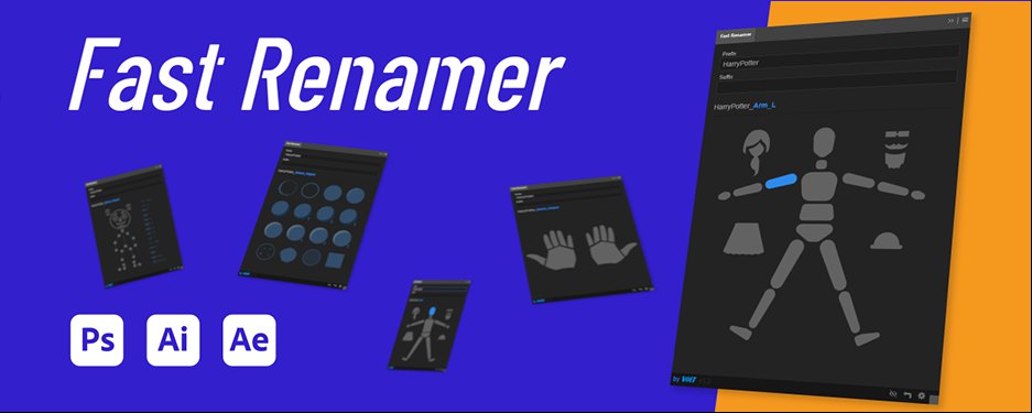 使用 Fast Renamer脚本在Photoshop、Illustrator和After Effects软件中快速给图层重命名。官方还提供5种语言版本:中文、英语、西班牙语、法语、意大利语。可设置名称前缀后缀和自定义增量。还默认提供了5个列表:简单身体、身体、角色动画师、手指、画画,根据列表提供的名称快捷给图层命名,当然您也可以创建自己的列表!