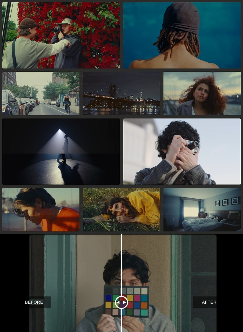 - 2. 灵活:您可以完全控制您想要的外观该工作流程适用于任何相机的对数曲线配置文件,可以将胶片仿真应用于各种影像素材。