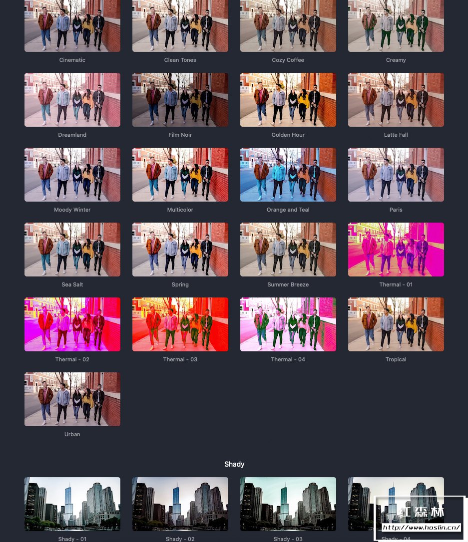Essential LUTs是一组适用于Mac苹果平台上Final Cut Pro、Adobe After Effects、Adobe Premiere 和 Apple Motion的一键式调色工具集合,内置了75种基本常用视频LUTs预设。如电影、Vlog、时尚、复古、黑白等等。插件还提供了一些调整选项,如亮度、对比度、饱和度等,使用户能够根据需要微调颜色获得美丽的结果。