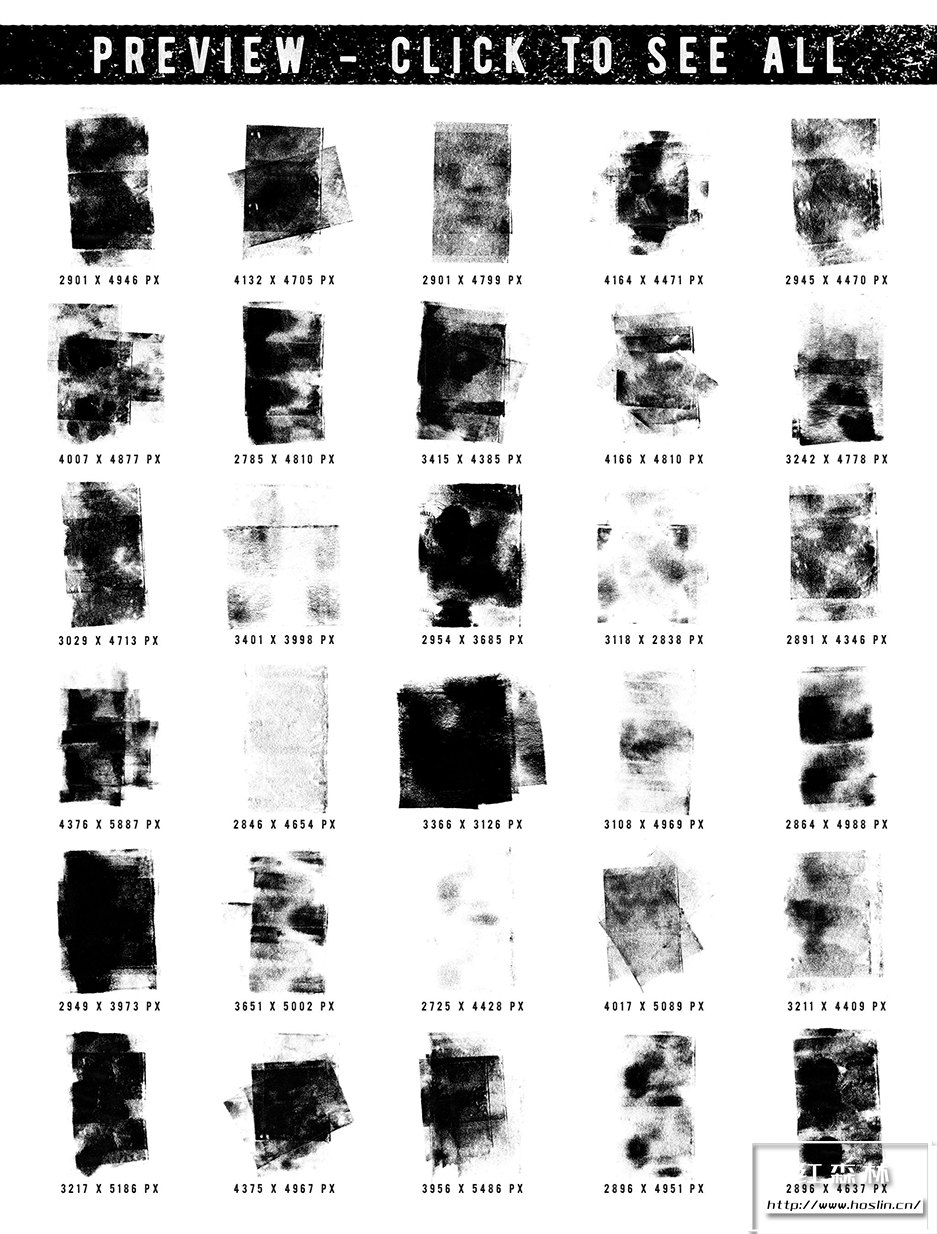 这些纹理非常适合用作背景,或用作蒙版,为文本、徽标和其他设计添加纹理。可以将它们组合起来以获得自定义结果。