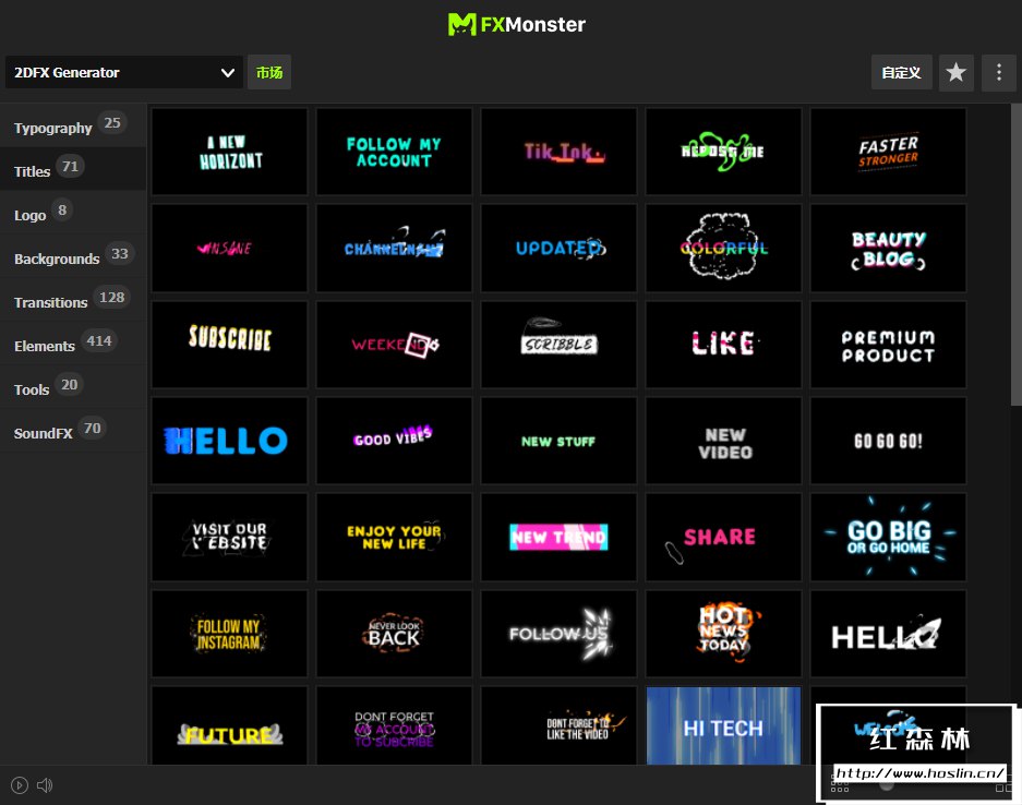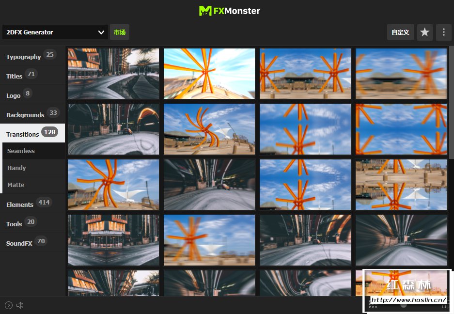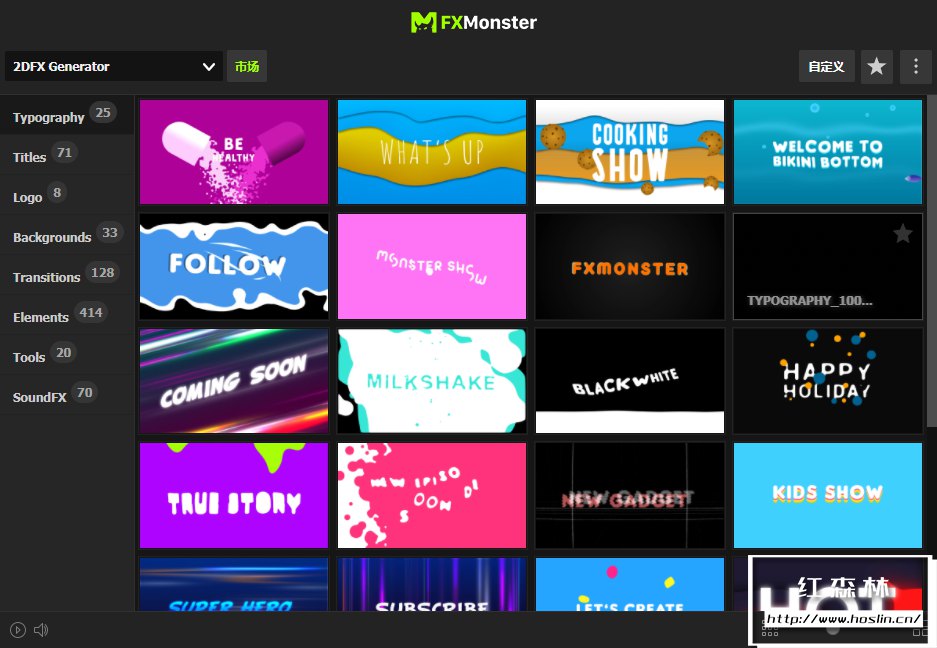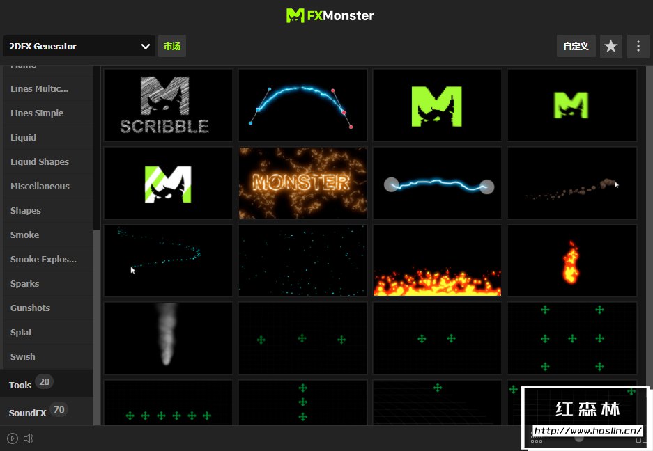 使用FXMonster脚本加载使用预设动画;强大的2DFX动画项目v1.2,拥有超过769个MG动画元素:场景文字,文字标题,LOGO片头,图形背景,转场,音效,工具,能量电流火焰线条流体烟雾闪光等图形动画。直接在FXMonster脚本中可视化预览效果,需要什么动画点击即可加载到合成中,能够修改颜色大小位置,文字和LOGO均可自定义修改,支持中文输入;元素也可以自由组合搭配使用,创建更多可能。