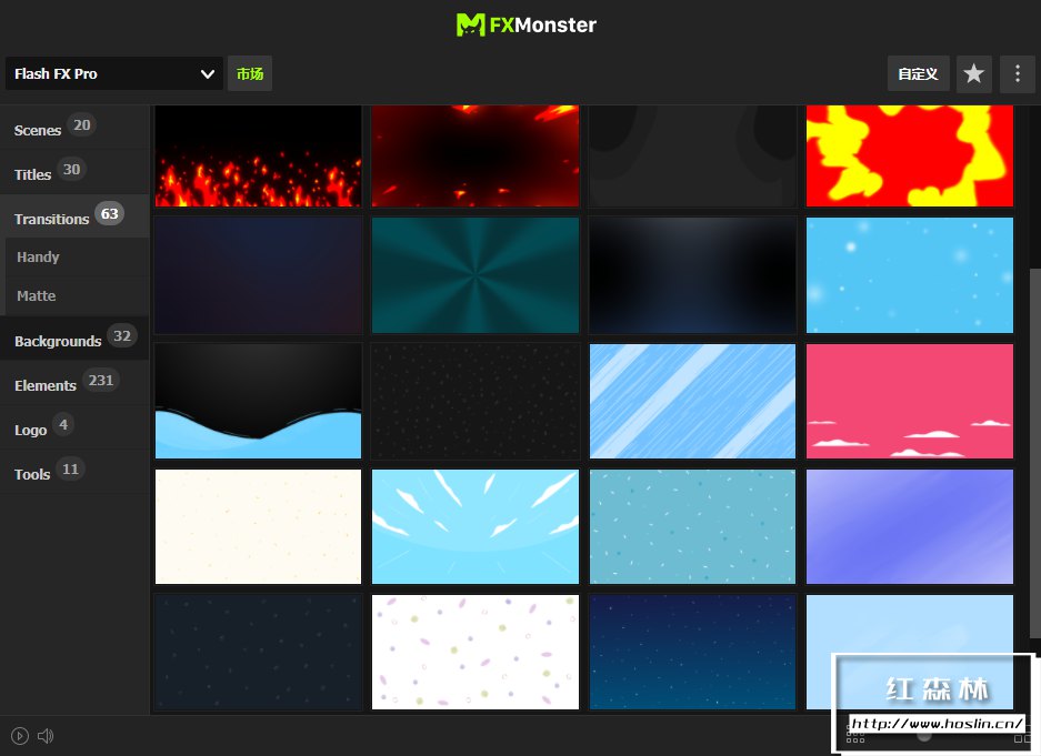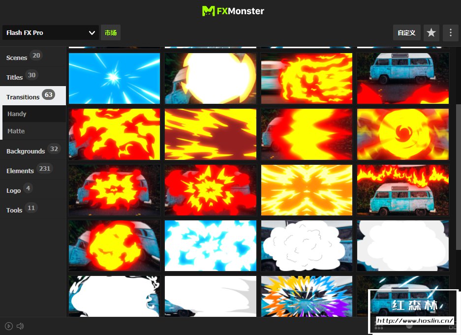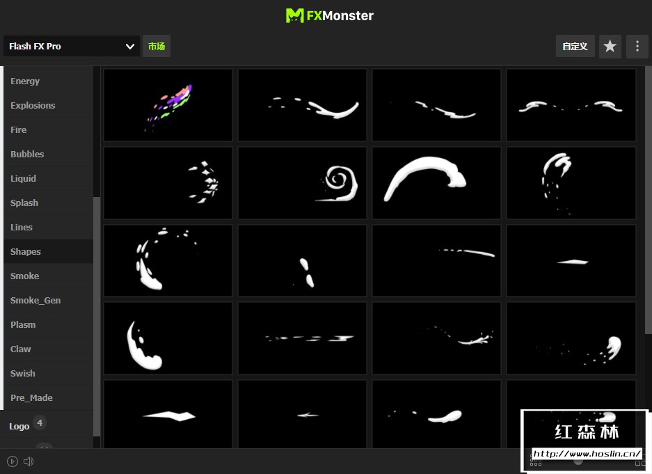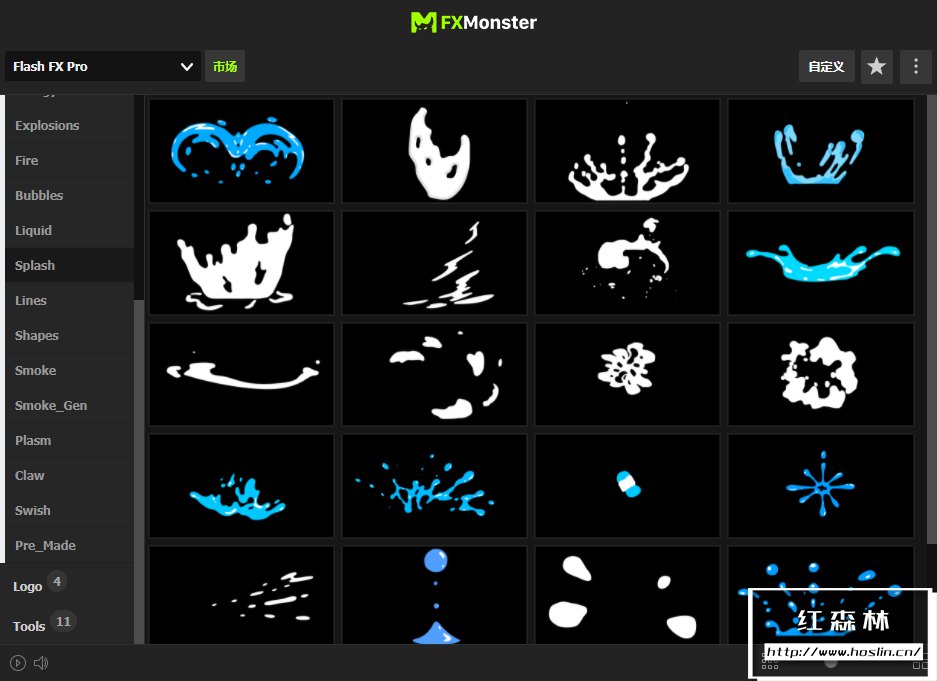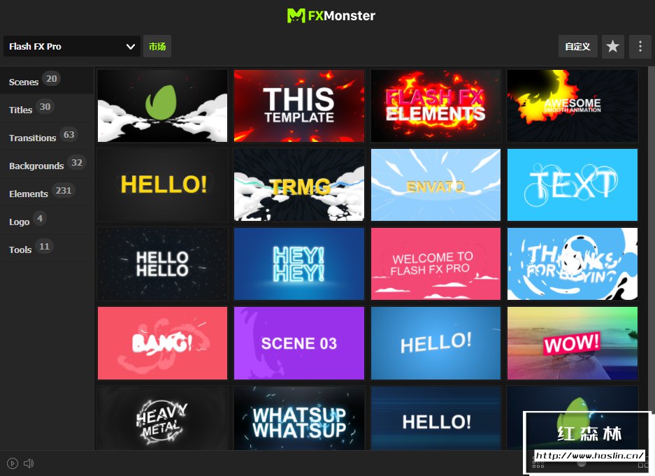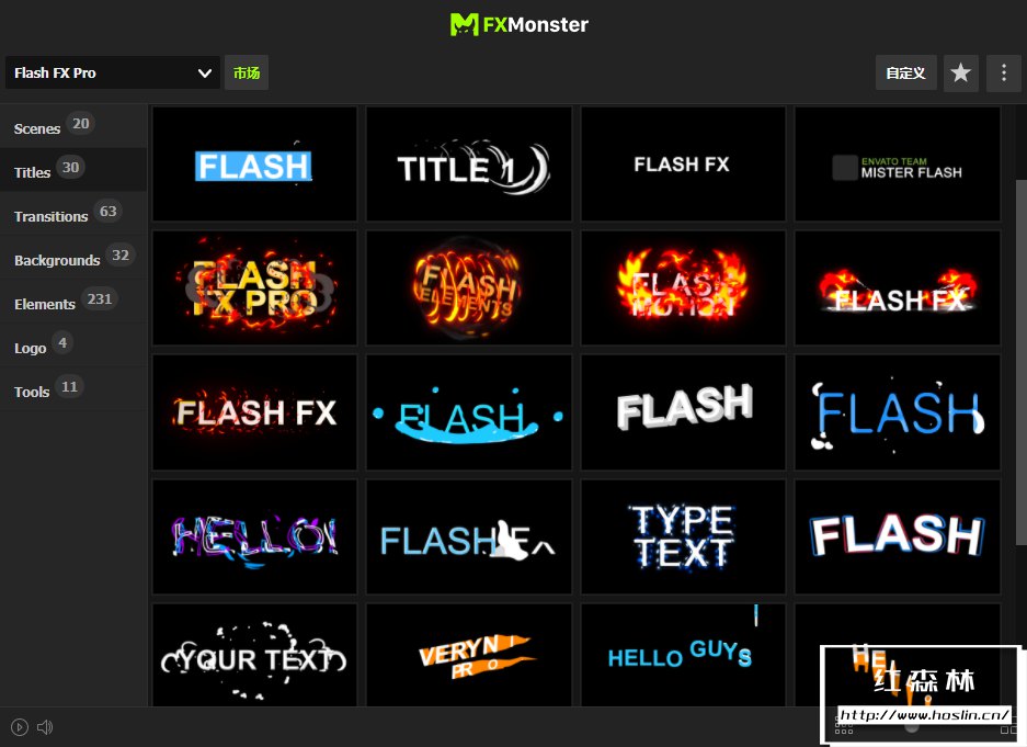 Flash FX Pro – Animation Constructor 使用FXMonster脚本加载使用预设动画,拥有391个动漫卡通MG动画,如电流能量,爆炸,火焰,烟雾,图形,背景,LOGO标题等。直接在脚本中可视化预览效果,需要什么动画点击即可加载到合成中,能够修改颜色大小位置,文字和LOGO均可自定义修改,支持中文输入;元素也可以自由组合搭配使用,创建更多可能。
