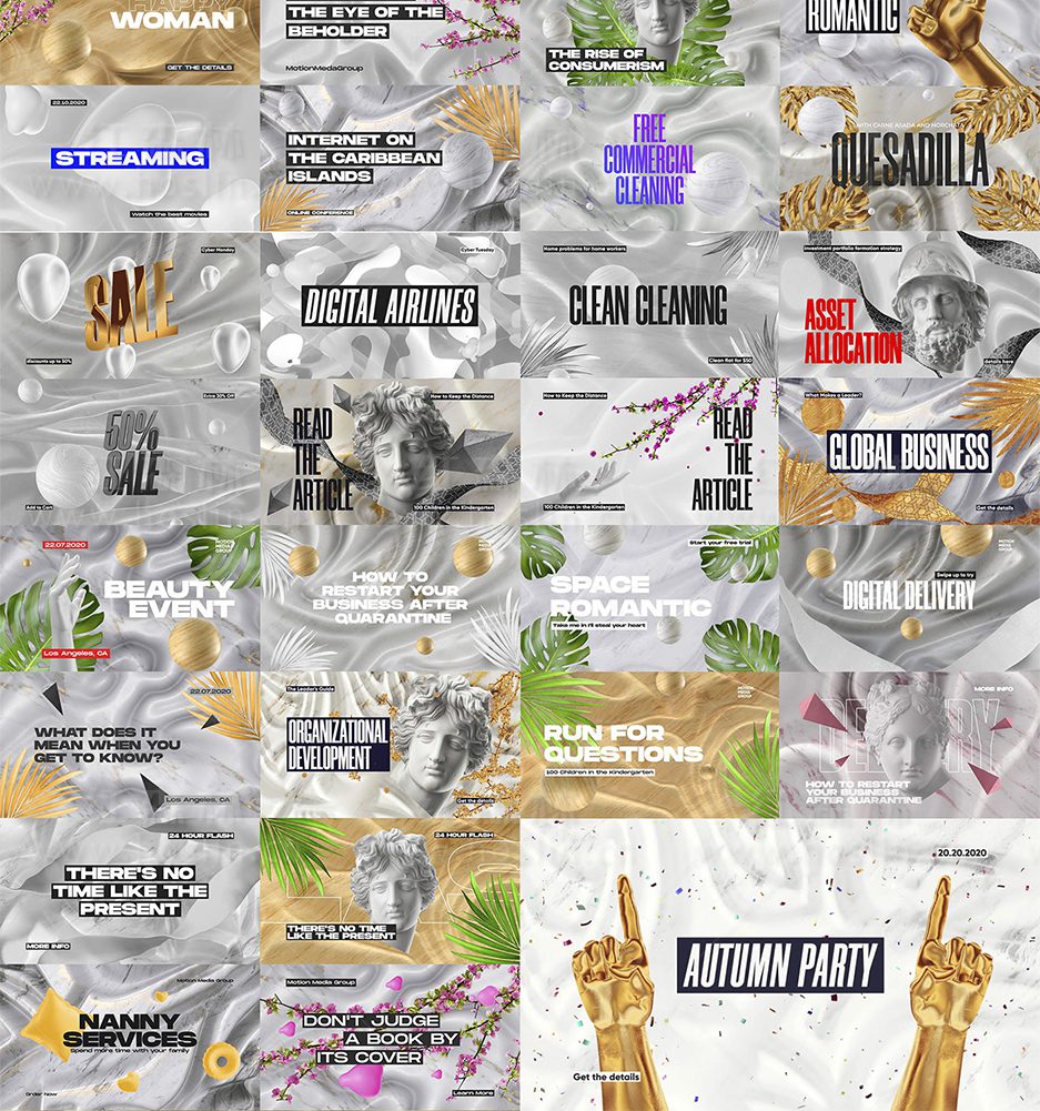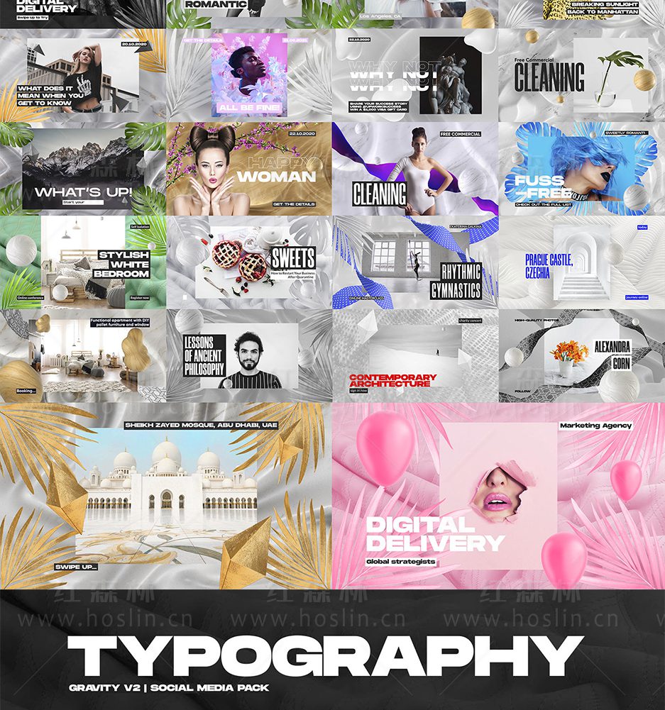使用Gravity V2 在 After Effects 中以时尚的艺术风格为社交媒体创建明亮的视频:时尚的故事、引人入胜的宣传视频和新鲜的音乐视频帧。这是一套面向设计师和内容营销人员的动态图形库,组织良好且易于使用。Gravity V2 拥有5个类别:标题、占位符、版式、背景和元素,超过 550 个关于商业、营销、活动、时尚、美食、旅行的作品动画,可自由调整在各种社交媒体上的视频大小分辨率等:替换和更改元素比例,混合不同的背景、视觉元素和颜色。组合不同的视频以延长时间。Gravity V2使用Motion Bro 4汉化版脚本调用,双击即可加载到时间线,对各种熟悉AE技能的人士都非常友好。