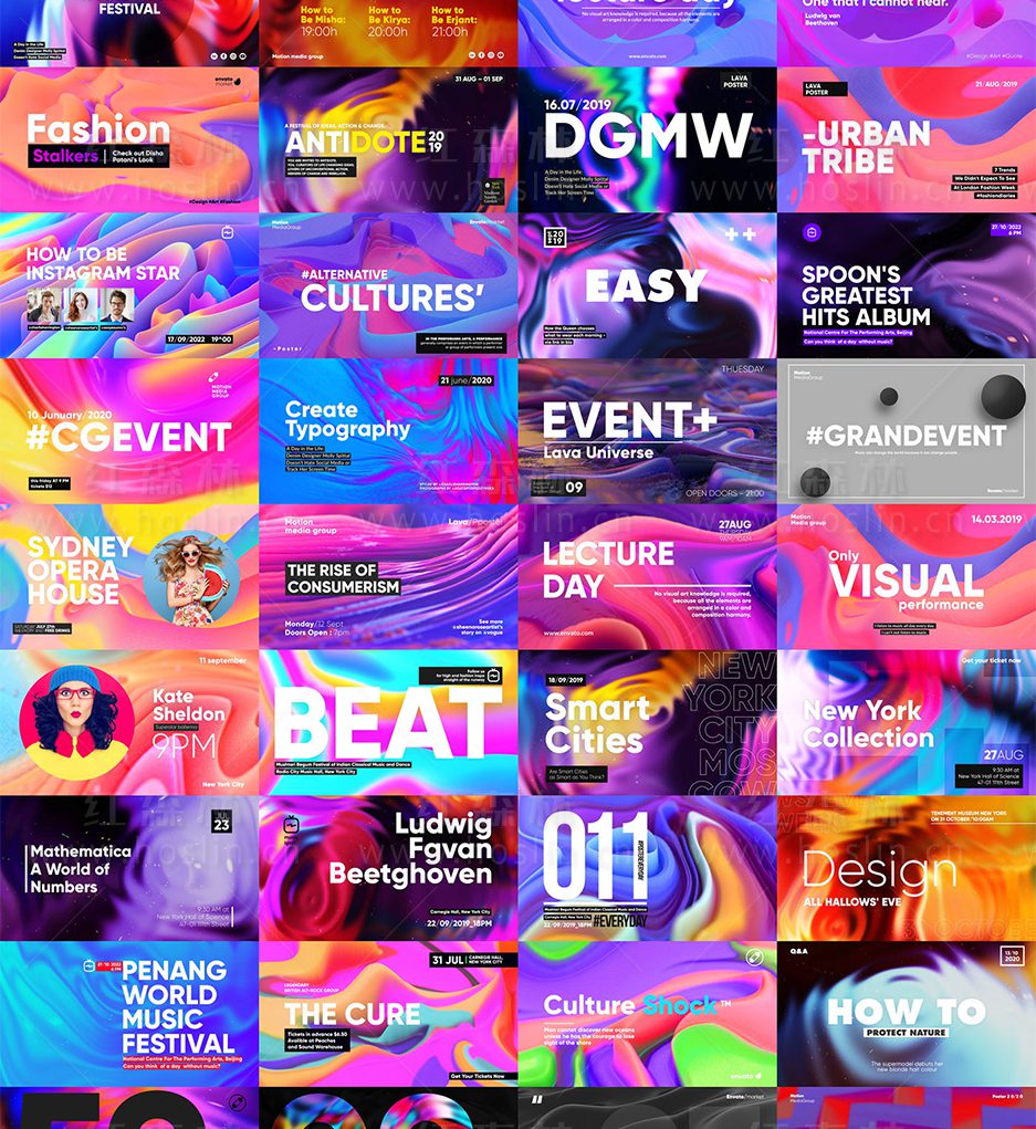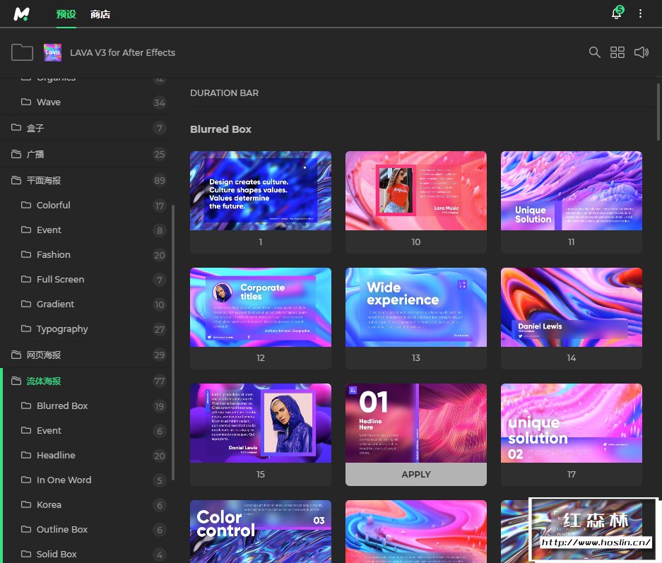 Lava Social Media Pack V3 包含8各类别的600多种场景动画,时尚、城市、体育、旅游、商业、设计、活动等主题的预制演示。使用Motion Bro4汉化脚本调用,操作简单方便,双击即可加载到时间线。