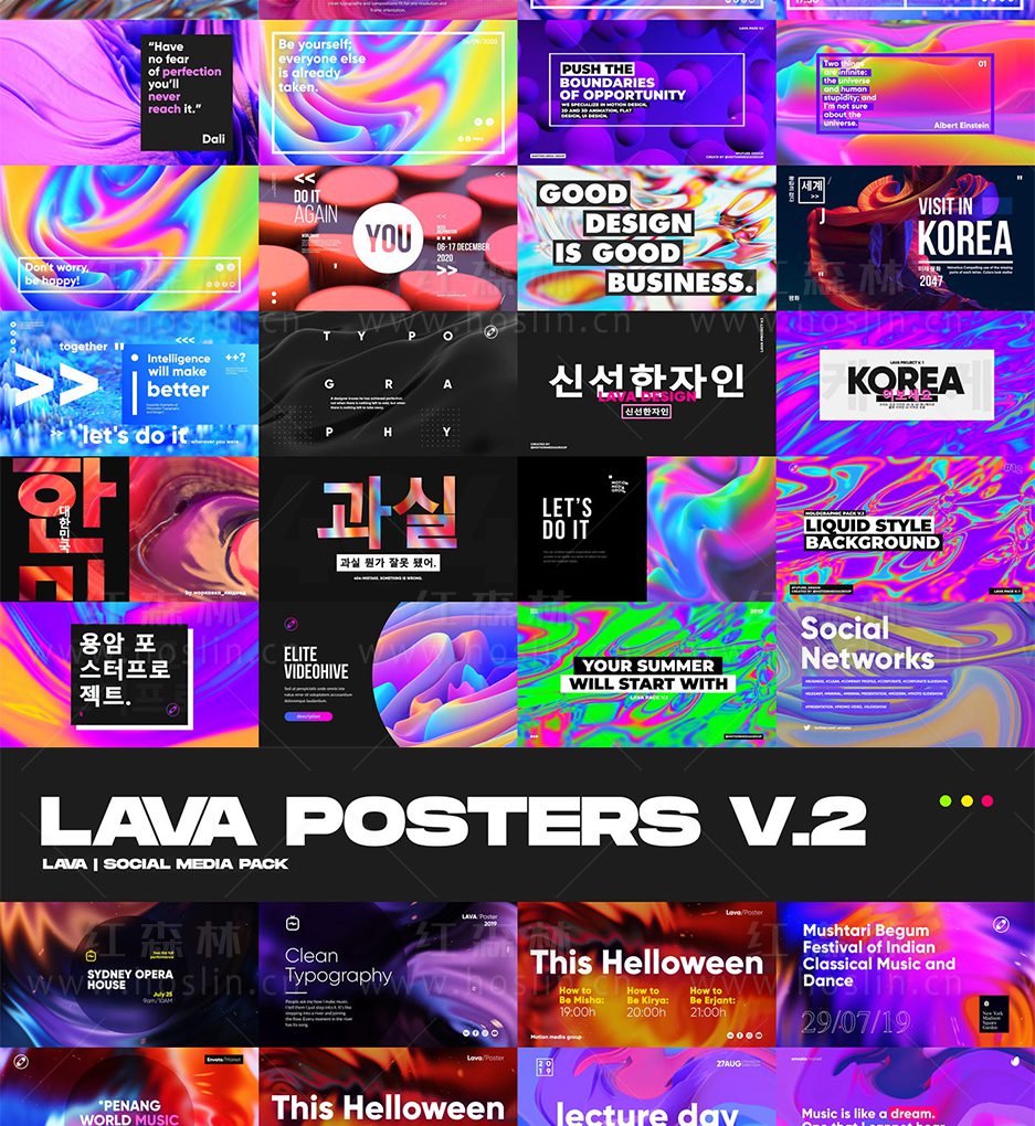 使用Lava Social Media Pack V3 在社交媒体和电视上投放您的设计和广播设计,制作动画故事、海报、开场白和保险杠。它专注于一种风格的交流设计:明亮的色彩组合、简单的形状、干净的排版和适合任何分辨率和框架方向的构图,以在任何现代设备上提供更好的用户体验。我们设计了抽象的有机背景,具有明亮的色彩过渡和平面动画海报,以在巨大的信息流中突出您的信息,并吸引人们对 标题中的文字的关注。如果您想使用真实的视觉效果,请选择带有占位符的构图并插入照片、视频、编辑颜色和文本并获取动画品牌内容。您可以组合多个作品并为您的媒体创建宣传片、开场白或一系列视频。不需要视觉艺术知识,因为所有元素都以颜色和构图和谐排列。
