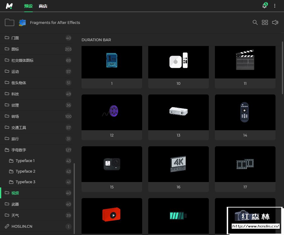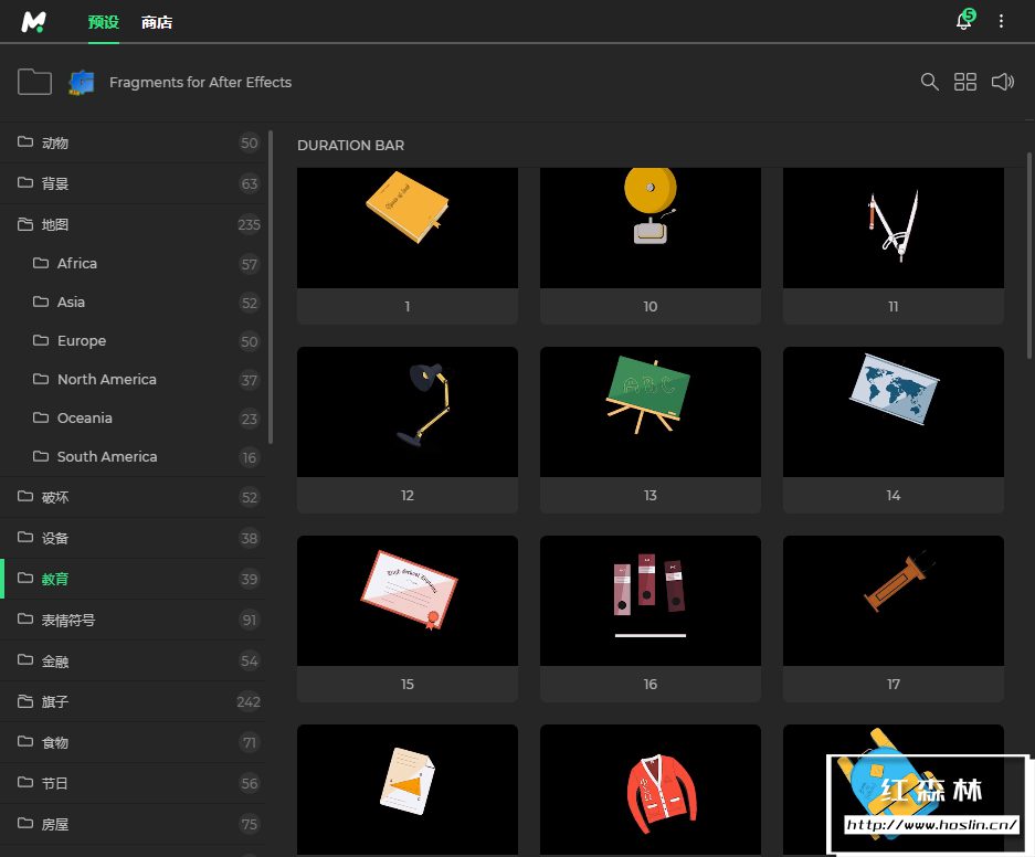 - 与Motion Bro 4 扩展一起使用。所有带有动画预览的元素都可以轻松使用。您可以将每个元素添加到书签中。所有元素都分为类别,以便于搜索。