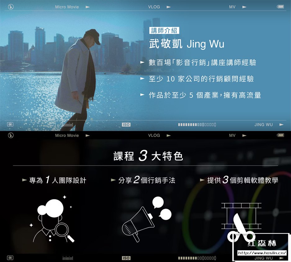 • 我清楚部分學生學習影片製作,目的不單只是用作於紀錄,同時也期望能應用在商業上,達成品牌或產品在社群曝光的目的,或希望能嘗試經營自媒體 及 YouTube 頻道。但所面臨的狀況是,現在的社群平台已不像早年存有流量紅利,所以作品上傳後,通常觀看人數少少無幾,甚至上傳幾十支,因為沒有見到成效,就黯然選擇退出。因此課程中加入行銷操作的實戰經驗分享,我會和你分享自己如何在沒有投放廣告的情況下,讓作品於社群上盡可能的大量曝光,以避免你辛辛苦苦做出來的作品,沒有辦法遇見伯樂。