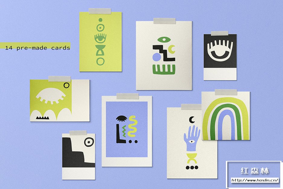 - 14 张预制卡片(AI、EPS10、PNG + JPEG)