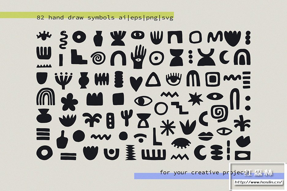 你好!这是一个 TRIPPY SYMBOL 捆绑包。手绘简单的符号、无缝图案、Instagram 模板。您可以为您的项目创建无数的变体。所有元素都很容易重新着色♥