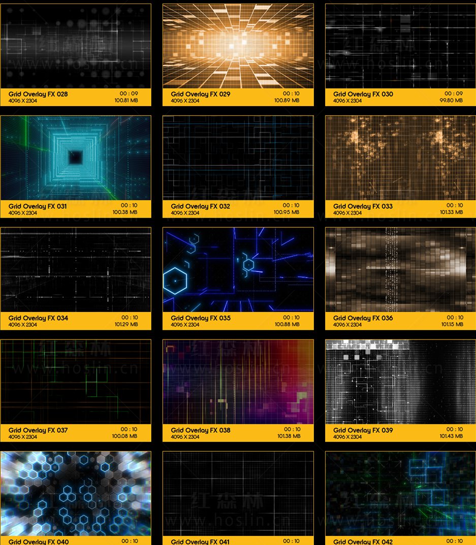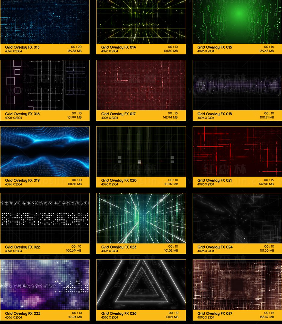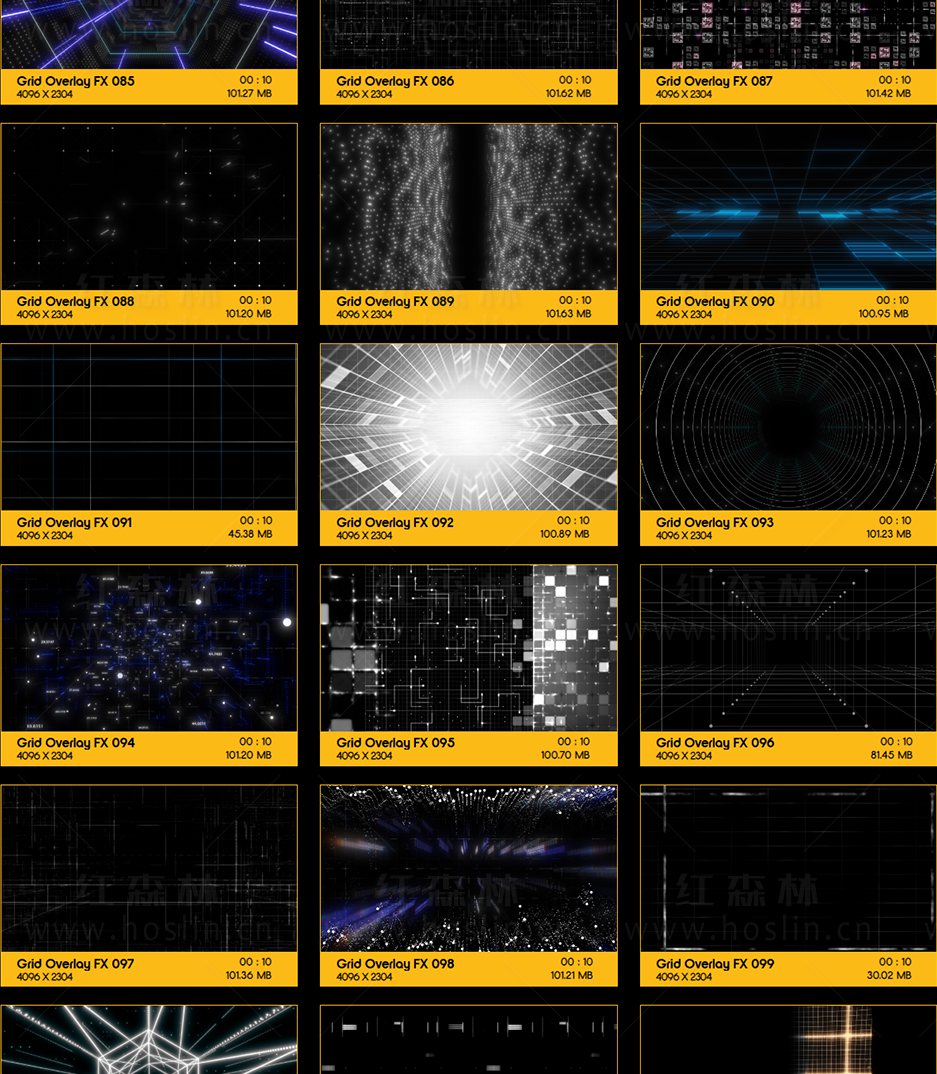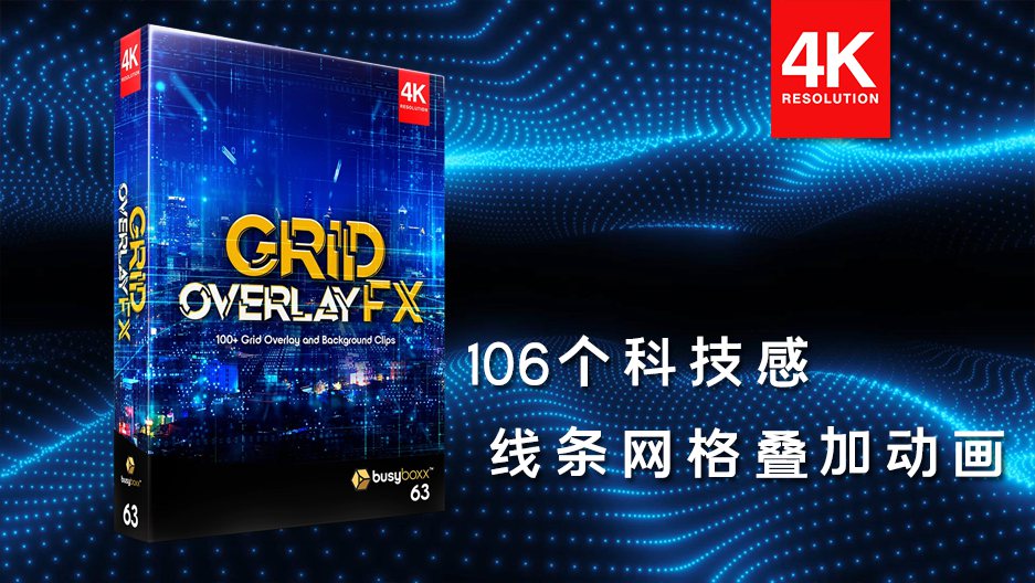 106个科技感粒子线条网格特效叠加动画,丰富的网格类型,精心打造,为您的作品增添科幻特效,非常适合从文本显示到制作中的实际电影合成的所有内容。它们使用简单,只需拖放和混合,我们做了繁重的工作,以确保每个剪辑都易于您使用。Grid Overlay FX没有透明通道,可修改混合模式(屏幕/滤色)即可与你的视频素材叠加使用。