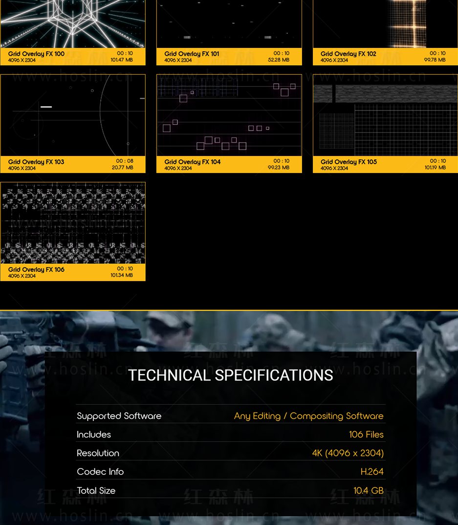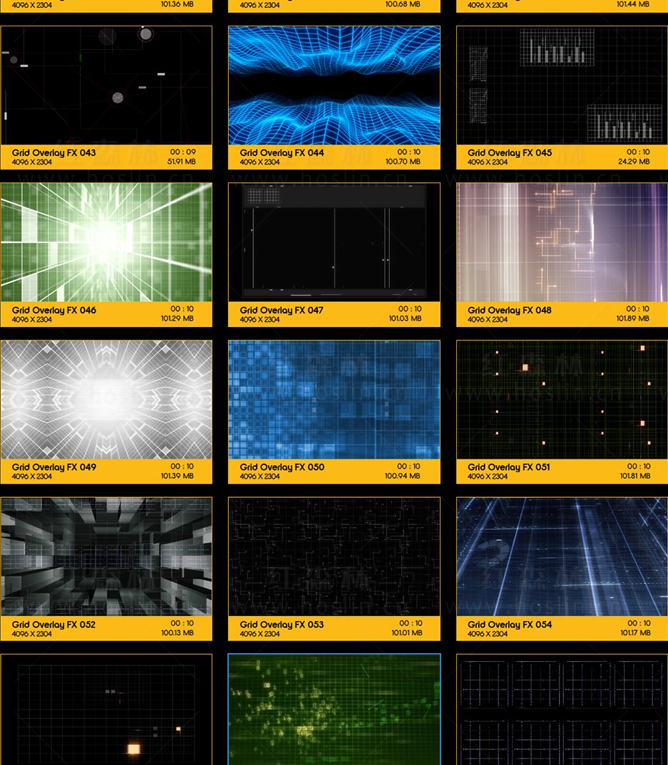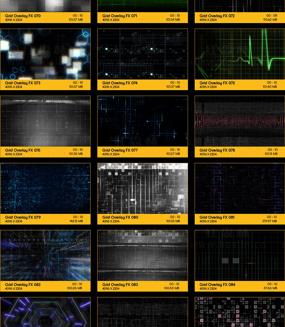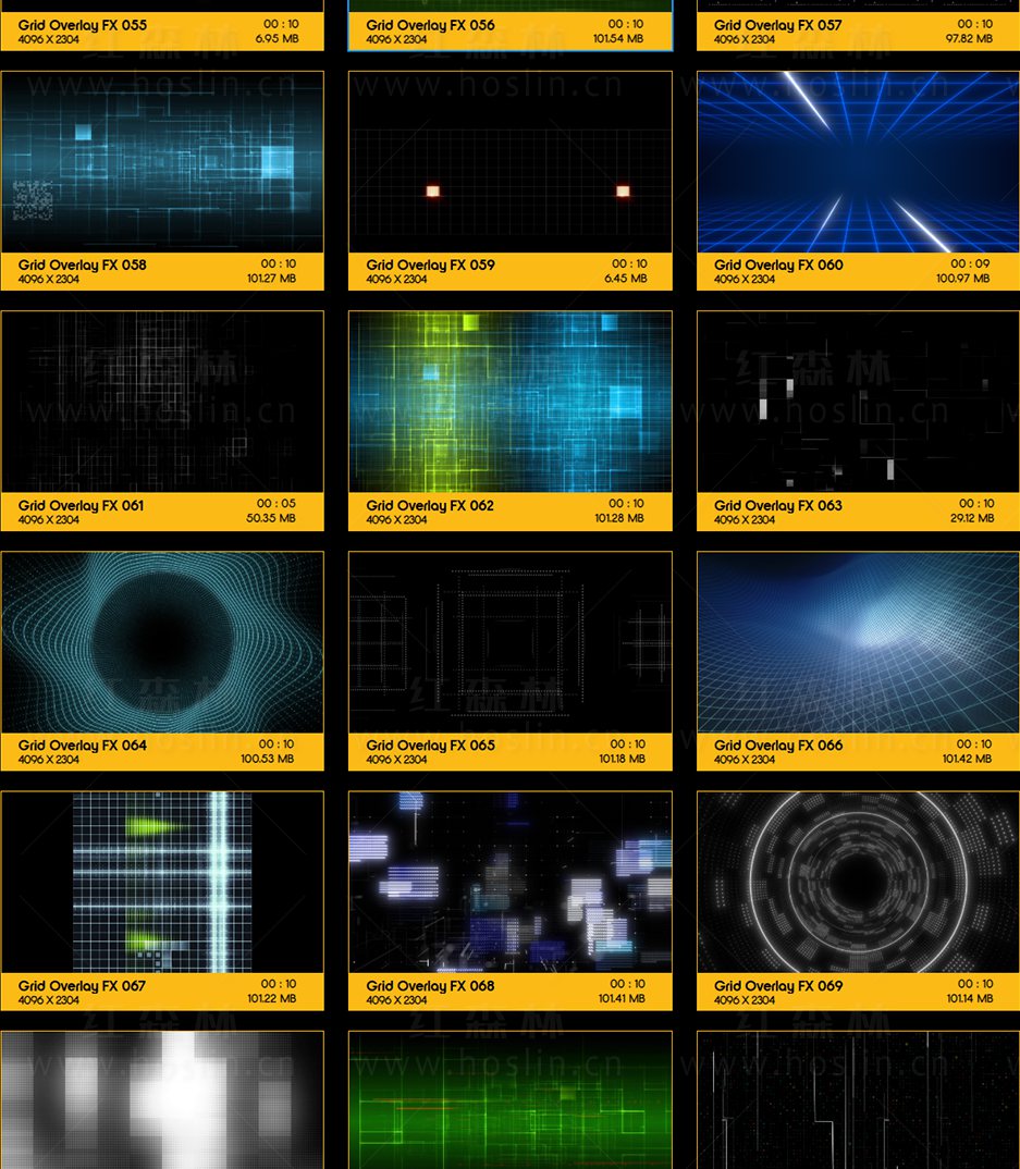 106个科技感粒子线条网格特效叠加动画,丰富的网格类型,精心打造,为您的作品增添科幻特效,非常适合从文本显示到制作中的实际电影合成的所有内容。它们使用简单,只需拖放和混合,我们做了繁重的工作,以确保每个剪辑都易于您使用。Grid Overlay FX没有透明通道,可修改混合模式(屏幕/滤色)即可与你的视频素材叠加使用。