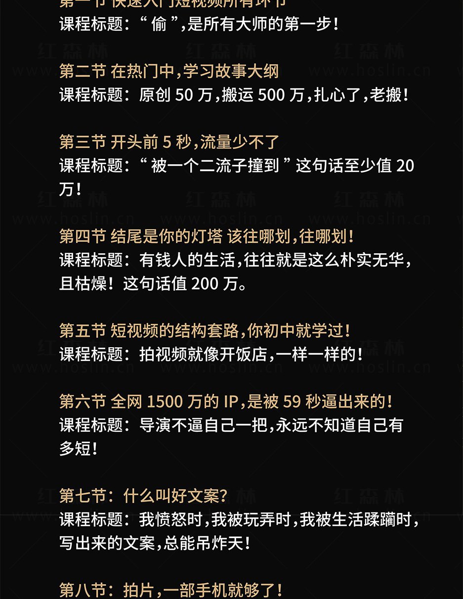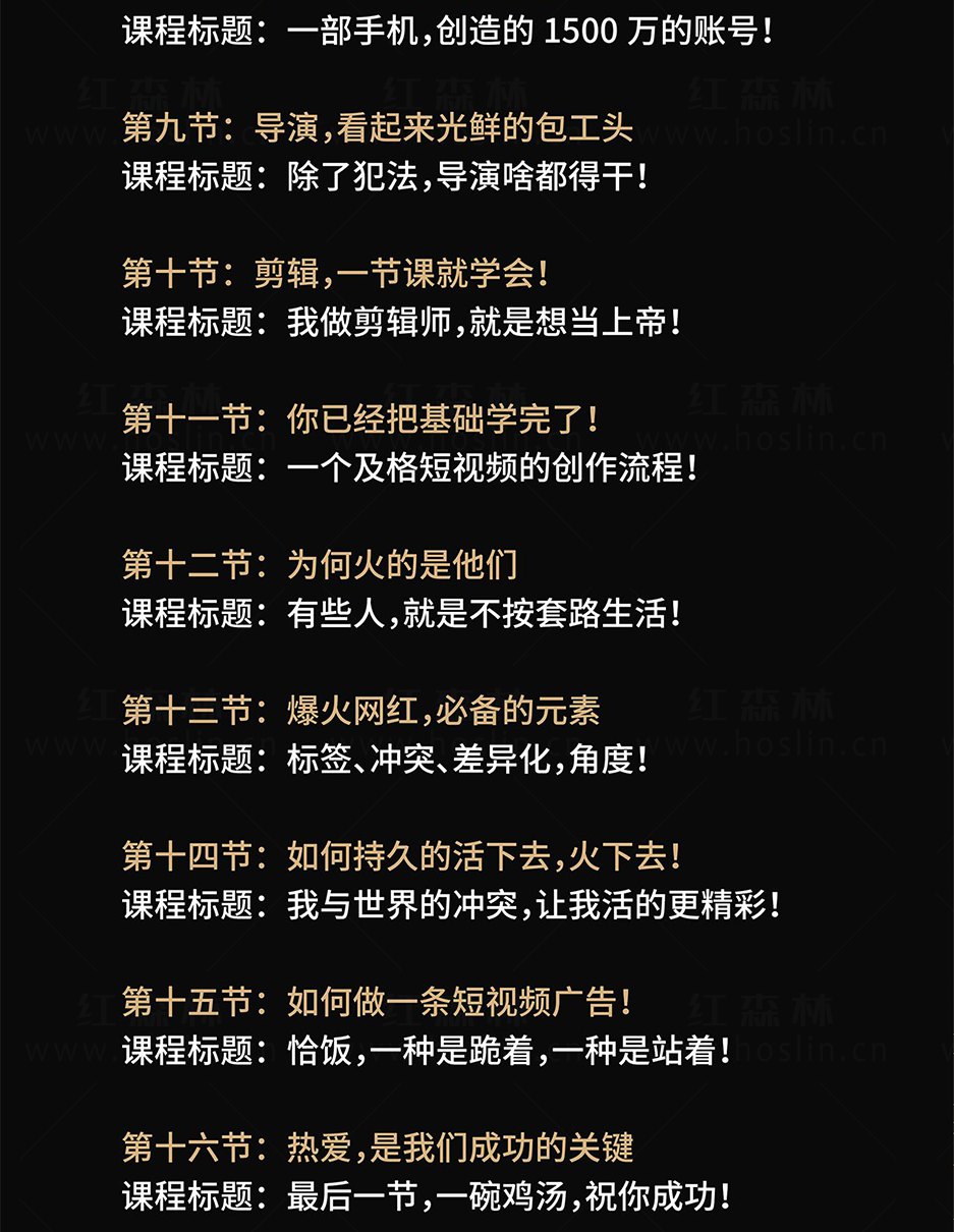 市面上90%的短视频博主,我看他3条视频,就能摸透他的心肝脾肺肾,并能在他的基础上超越他, 剩下的10%需要10天。因为我熟知灵感、创意,编 剧,摄像、表演、导演、剪辑、运营每个环节。可是,我永远无法做到像他们一样好,因为每个人都 有自己的人生经历、感悟、看待世界的独特角度,你也一样。