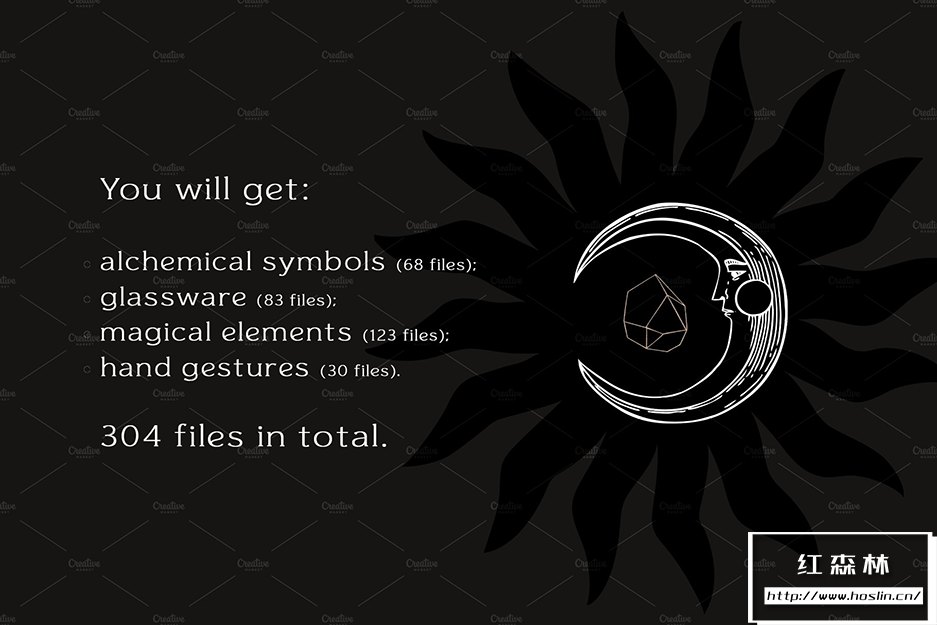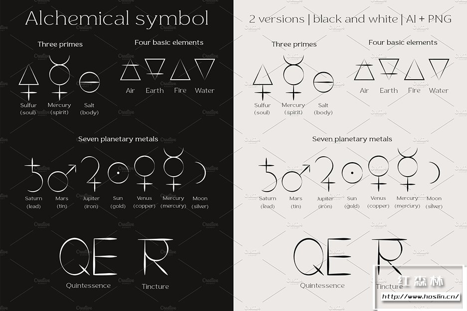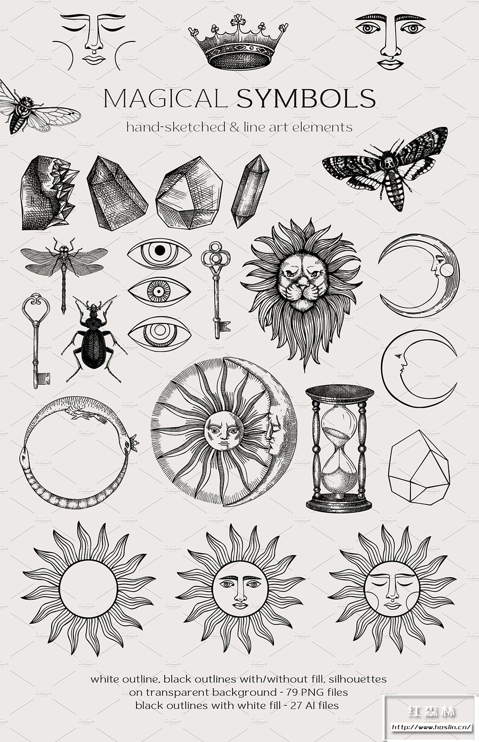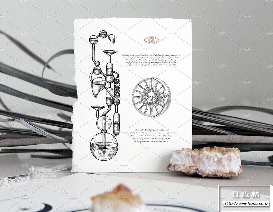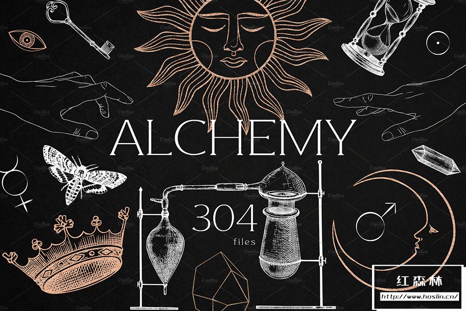 炼金术是一个现代图形集合,包含古代符号、炼金玻璃器皿和现代标志元素。使用此套件中的手绘草图和线条艺术项目,您可以创建徽标、贺卡、纹身、规划师、海报、塔罗牌、印刷品、贴纸、婚礼请柬或品牌设计。