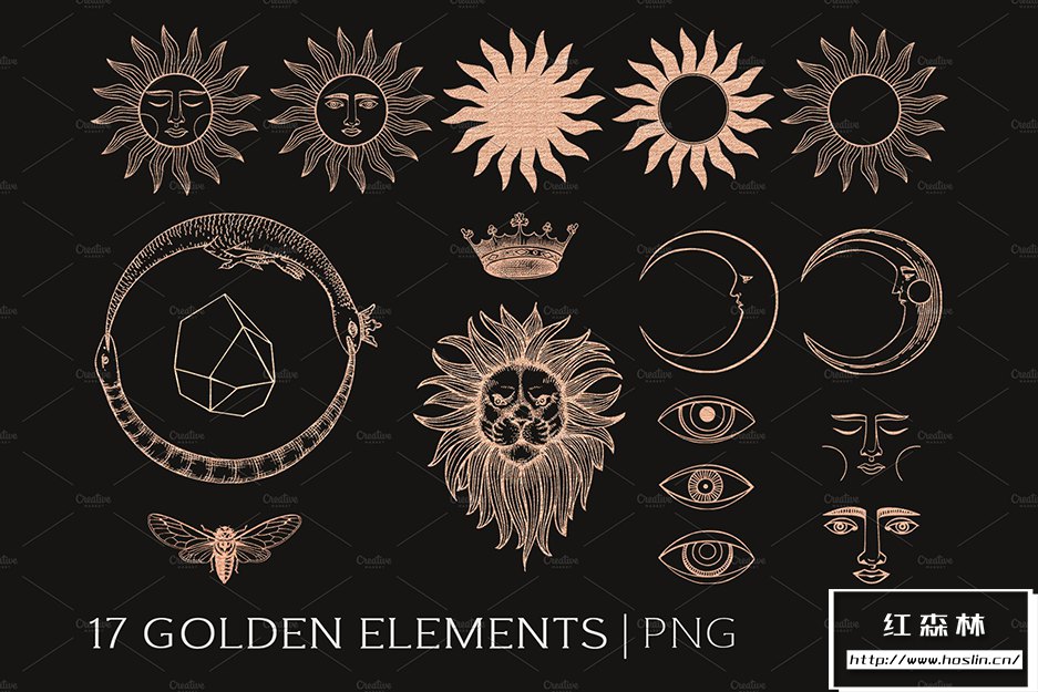 - 金色元素| 透明背景| 总共 17 个 PNG 文件