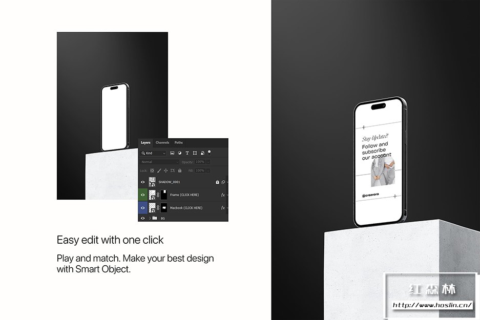 - Photoshop 文件包含一张照片和一个用于添加设计的智能图层,任何元素都不能移动。模型需要 Photoshop CS4 或更高版本(推荐 CC)。不包括框架和 iPhone/笔记本电脑屏幕设计,仅用于展示目的。