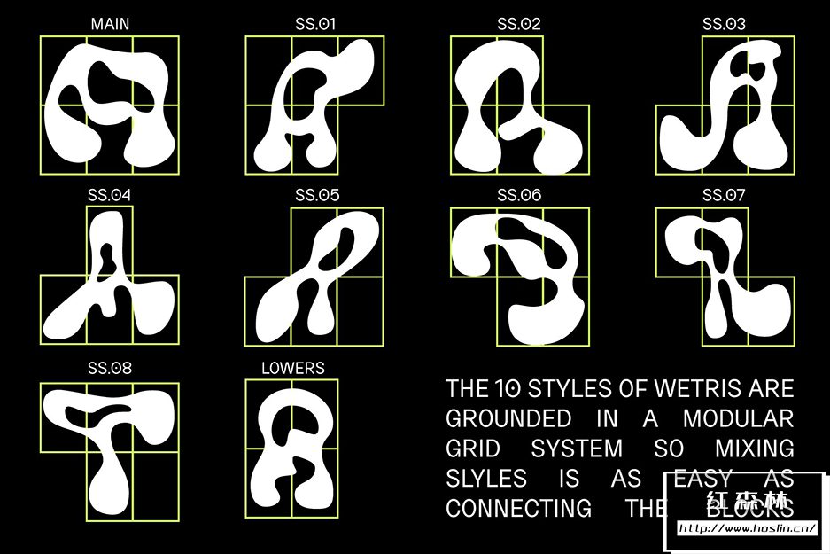 Wetris 是市场上最通用、可定制的液体显示字体。每个字母都有10 种样式,可以组合在网格系统中(如俄罗斯方块),因此您每次都可以拥有独特的自定义液体斑点类型。对于那些希望在他们的项目中添加迷幻图形现代手工风格的设计师来说,这是完美的选择。无论是海报、杂志、Instagram、在线还是品牌。无论您想用一点液体文本来调味,Wetris 都是工具。