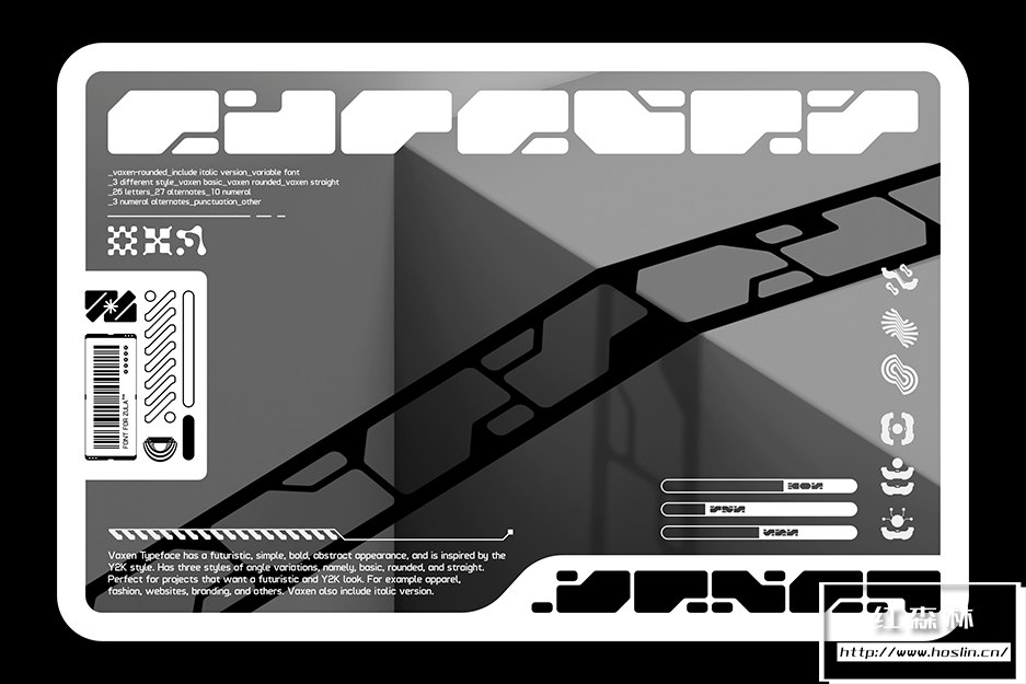 Vaxen-Rounded Typeface 是一种可变字体,具有未来感、简单、大胆、抽象的外观,灵感来自 Y2K 风格。非常适合想要未来感和千年虫外观的项目。例如服装、时尚、网站、品牌等。Vaxen 还包括斜体样式。