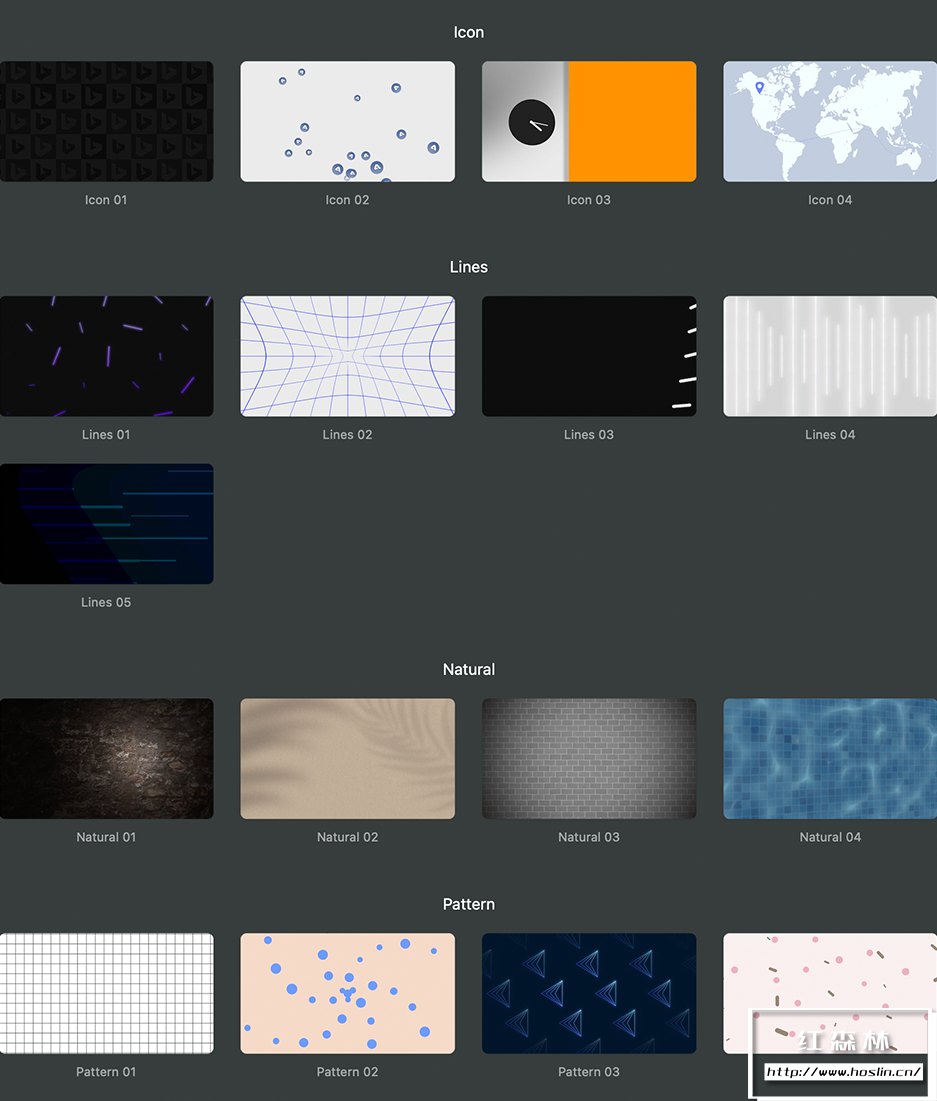 Backdrops 是拥有50个专业设计的Final Cut Pro动画背景的产品。背景有多种风格可供选择,涵盖各种类别,例如抽象、商业、几何、渐变、图标、线条、自然图案、场景科技复古婚礼。每个模板都提供类似的基本功能以及与其设计相关的特定参数。支持调整几何形状的颜色、不透明度和大小。将阴影控件应用到主元素。添加模糊和噪点等附加效果。而且可以通过将背景相互组合或与其他素材和图形组合,用户可以实现几乎无限的创意可能性。