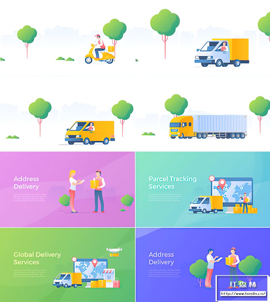 Delivery Flat Animated Concepts Pack 模板将帮助您使您的视频更加明亮、时尚、新潮和现代。该项目包含 20 个成熟的作品和 37 个动画对象,您可以将它们添加到动画中或作为 GIF 或视频放置在网页上。