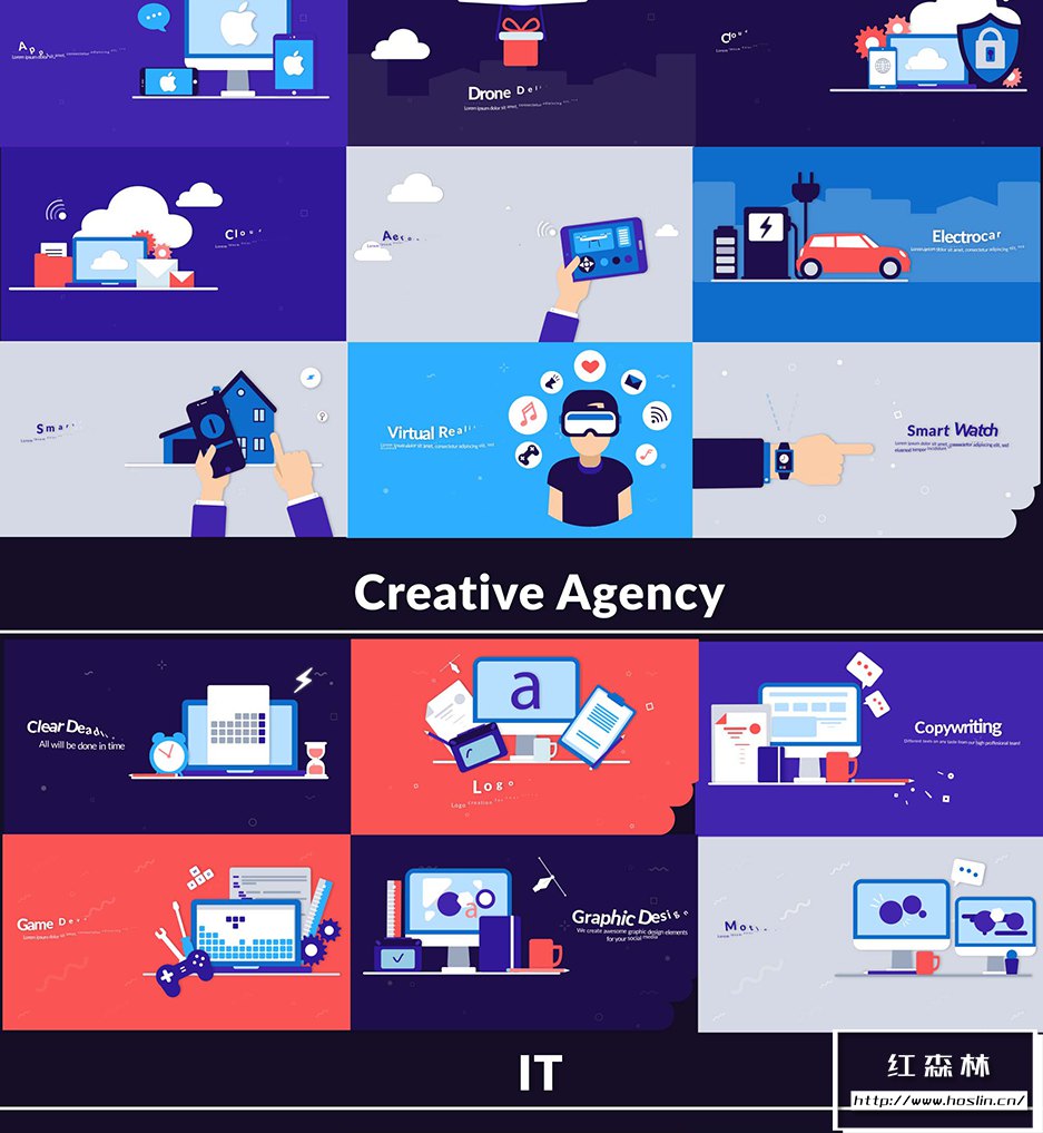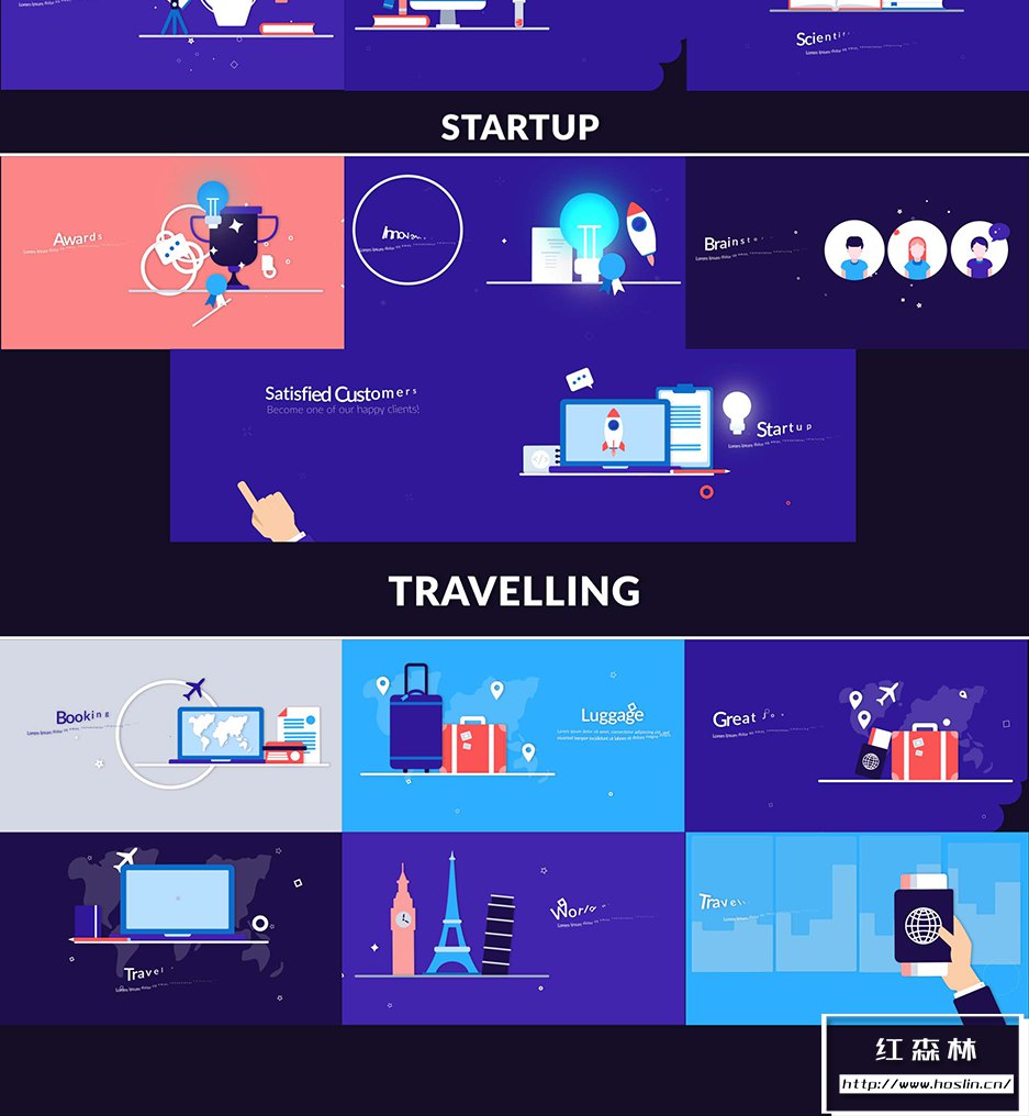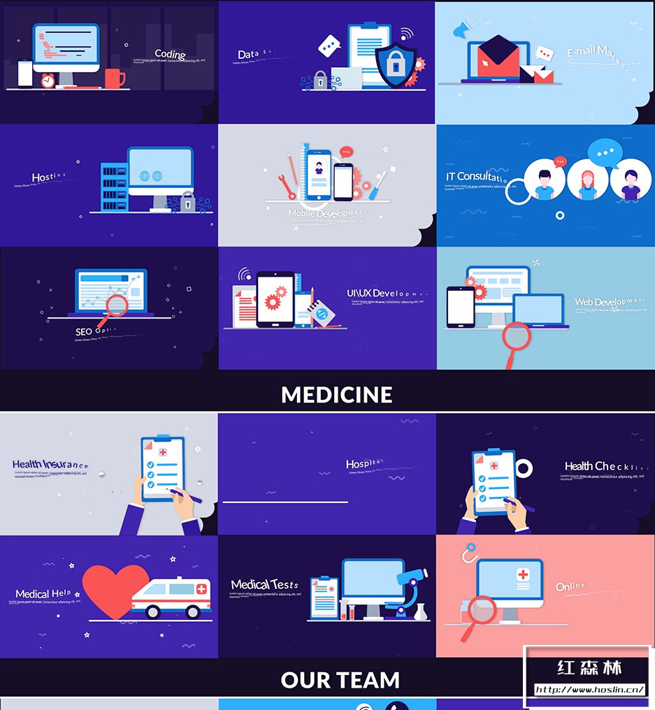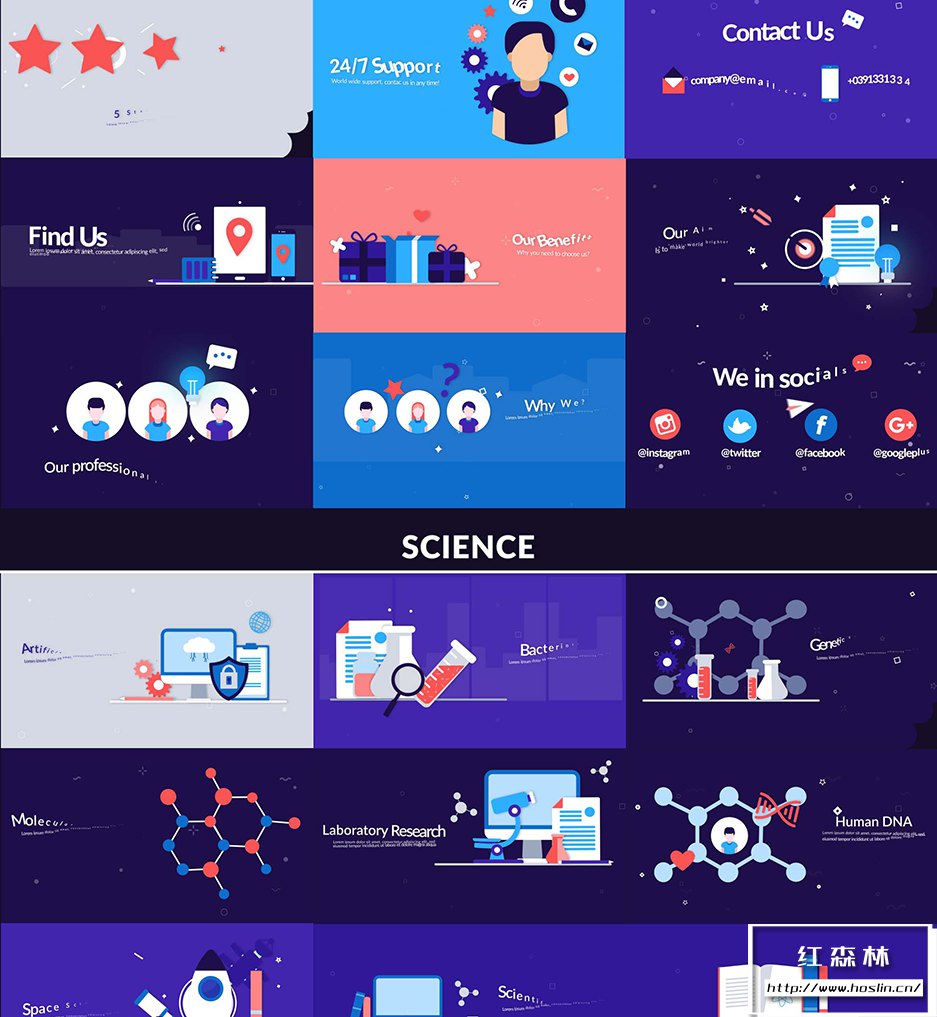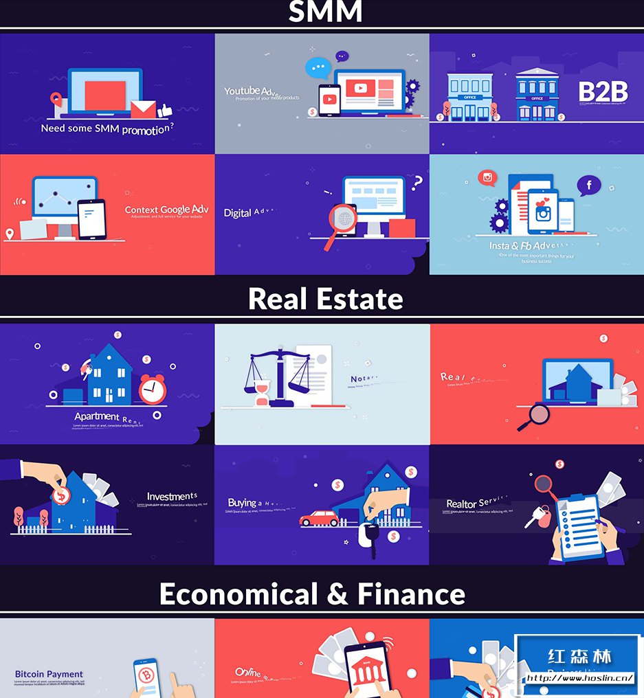 Design Concepts 包含14种类别共100多种场景动画:经济与金融、营销与分析、社交媒体市场营销、药品、信息技术领域、创意机构、创意技术、食物、我们的队伍、房地产、启动、旅行、科学、汽车,550+ 元素,3 种预制配色方案,所有场景都易于定制和调整。包含视频教程。
