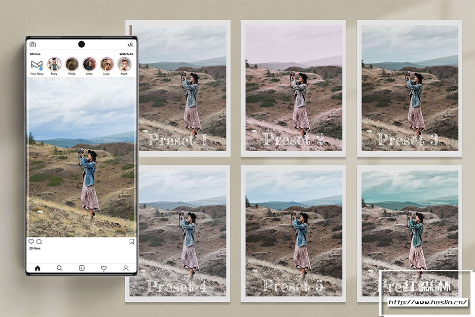22 个 Earthy 照片预设包包含 Lightroom 桌面预设、移动预设、LUT 滤镜以及 Photoshop 预设和动作。这些摄影滤镜主要用于生活方式和户外照片。此照片编辑滤镜提供温暖、深沉的喜怒无常、浓郁的棕色、米色、绿色、自然波西米亚和复古色调,是审美家庭肖像照片、Instagram 滤镜、博客影响者、旅行和婚礼照片、户外、热带丛林的最佳选择、 风景与冒险、松鼠与鼠尾草主题摄影。