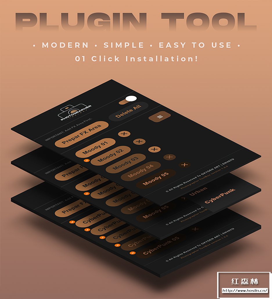 插件支持Win/Mac系统:Photoshop CC2015.5或更高版本,中文版PS可用。