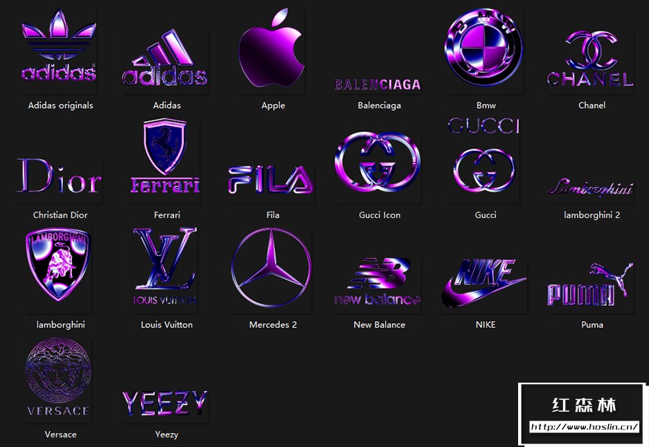 徽标包括:迪奥、阿迪达斯、路易威登、苹果、宝马、香奈儿、法拉利、古驰、兰博基尼、奔驰、新百伦、耐克等。使用 MoonBear 的 20 个自定义 Chrome 设计师徽标包为您的项目增添一些闪亮的光彩。