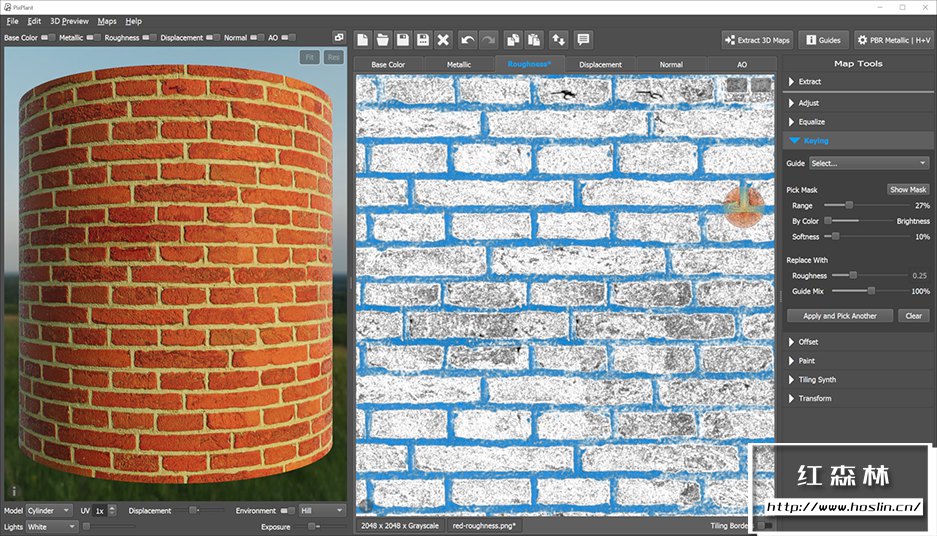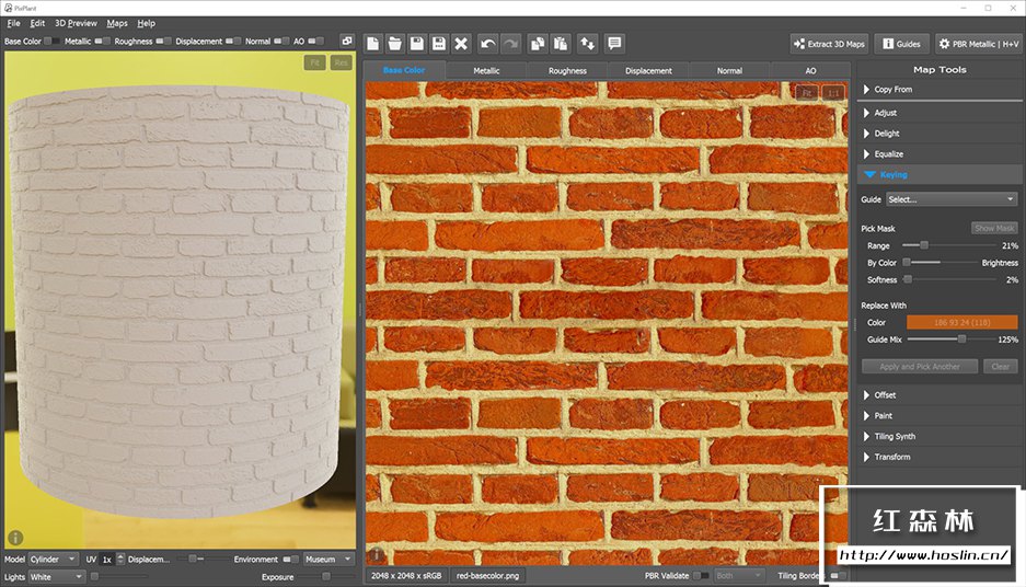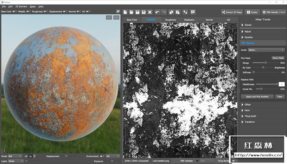 PixPlant 5.0.49是一款智能纹理应用程序,具有将照片快速转换为无缝重复纹理和3D贴图的最佳工具。PixPlant包括智能纹理引擎和3D贴图编辑器:使用PixPlant节省大量纹理时间!PixPlant可以从照片中快速创建无缝纹理。它是高度自动化的,只需点击几下即可创建纹理。基于照片,PixPlant为您的项目添加了无限的真实材质选择:选择一张有趣的照片,运行PixPlant并获得完美无缝的3D纹理.PixPlant可以从照片或其自己生成的无缝平铺图像中提取 3D贴图的工具。置换贴图、法线贴图、漫反射贴图、高光反射贴图和环境光遮挡AO贴图——所有提取的 3D 贴图都可以使用附带的编辑工具进行微调。