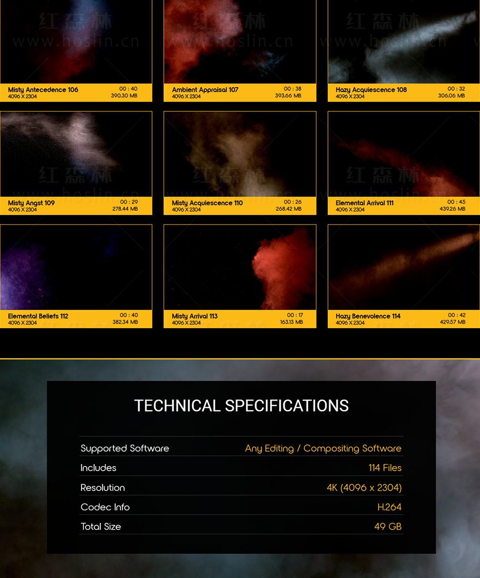114个彩色烟雾气体弥漫气氛渲染动画4K视频素材,使用最新的Phantom 4K Flex相机进行有机拍摄。1000FPS 将在编辑时为您提供惊人的灵活性,并允许您为项目增加更大的影响。使用Atmospheric Backgrounds添加电影强度并使用此音量中的剪辑控制情绪。这些动画使用简单,只需拖放和混合。我们做了繁重的工作,以确保每个大气背景都易于您使用。无需任何插件,更改混合模式使您的创意栩栩如生。适用于VFX特效合成、画面叠加或背景中使用;增强画面观赏性。分辨率:4096*2304,4K高清;无透明通道(可修改混合模式去黑底透明叠加使用)。