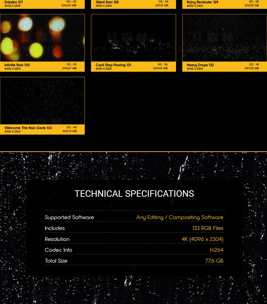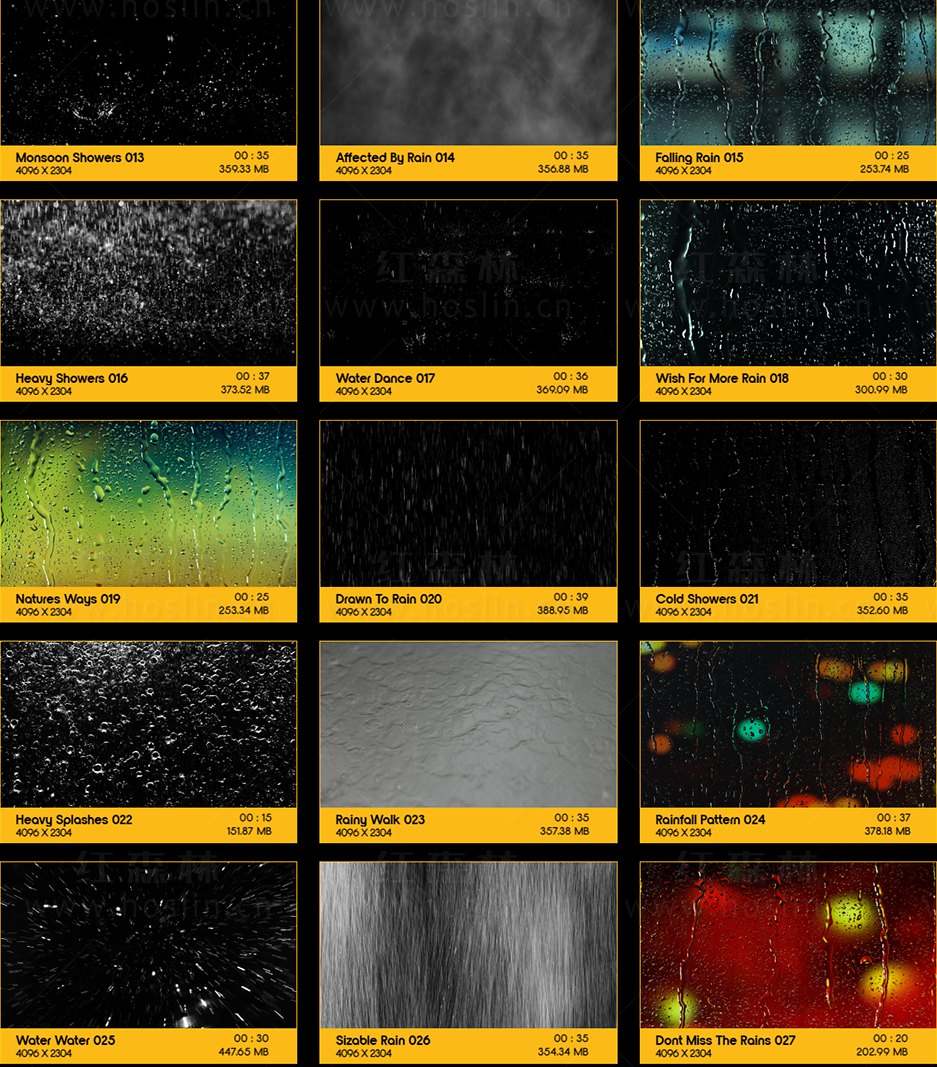 133个狂风暴雨下雨雨水动画4K视频素材,使用最新的Phantom 4K Flex相机进行有机拍摄。1000FPS 将在编辑时为您提供惊人的灵活性,并允许您为项目增加更大的影响。大雨阵雨狂风暴雨即将来袭,对于您的下一个项目,在您的镜头中添加一些降水,并观看它以前所未有的方式栩栩如生。Rain Fall使用简单,只需拖放和混合。我们做了繁重的工作,以确保每个雨水动画都易于您使用。无需任何插件,适用于VFX特效合成、画面叠加或背景中使用;增强画面观赏性。分辨率:4096*2304,4K高清;无透明通道(可修改混合模式去黑底透明叠加使用)。