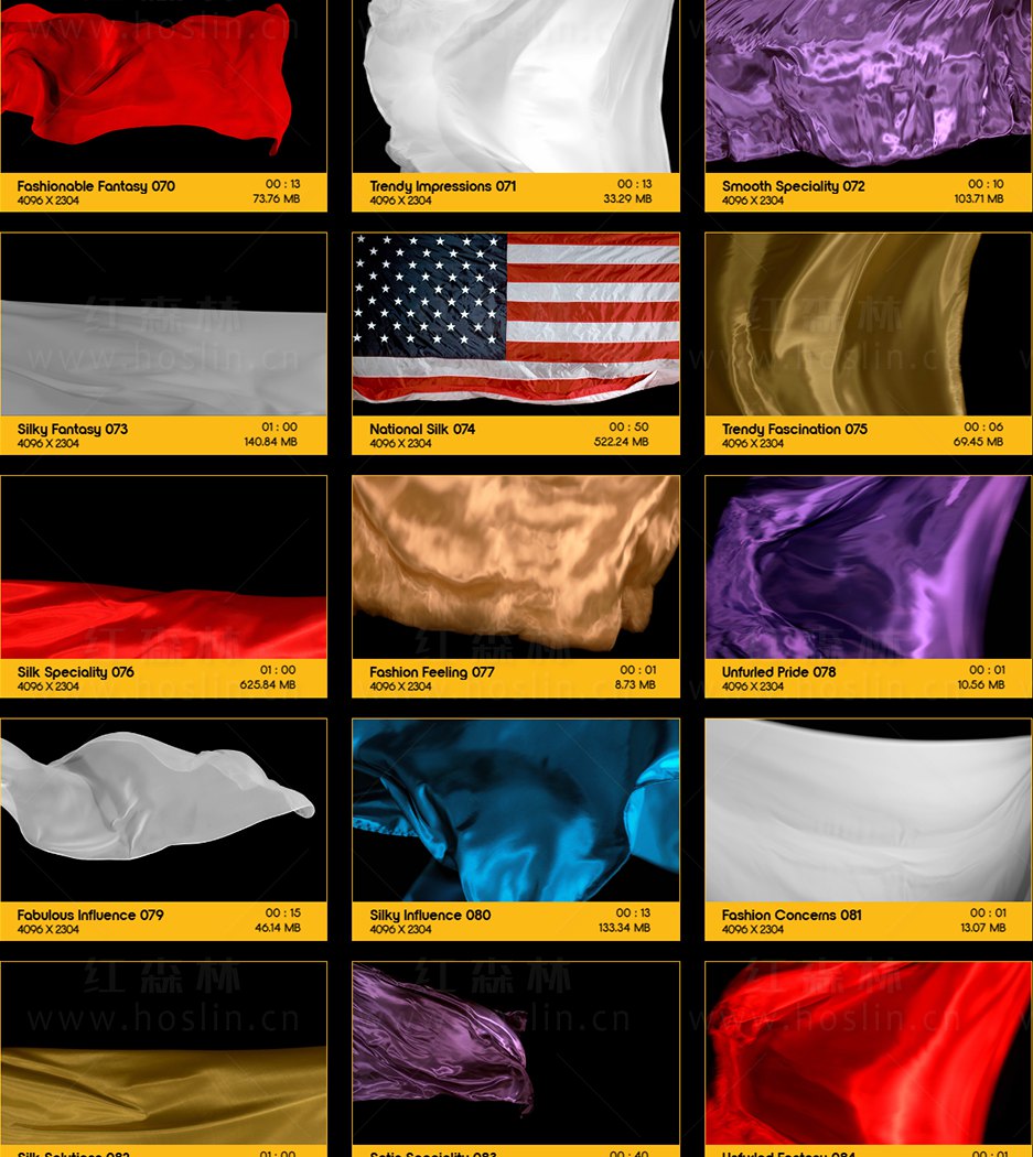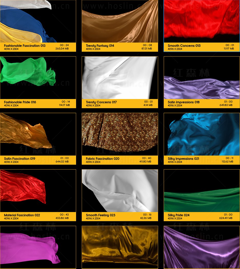 特别说明:此素材提供的是丝绸织物飘舞飞扬动画,没有预览视频中的实拍人物风景文字图片等素材,也没有AE模板工程。