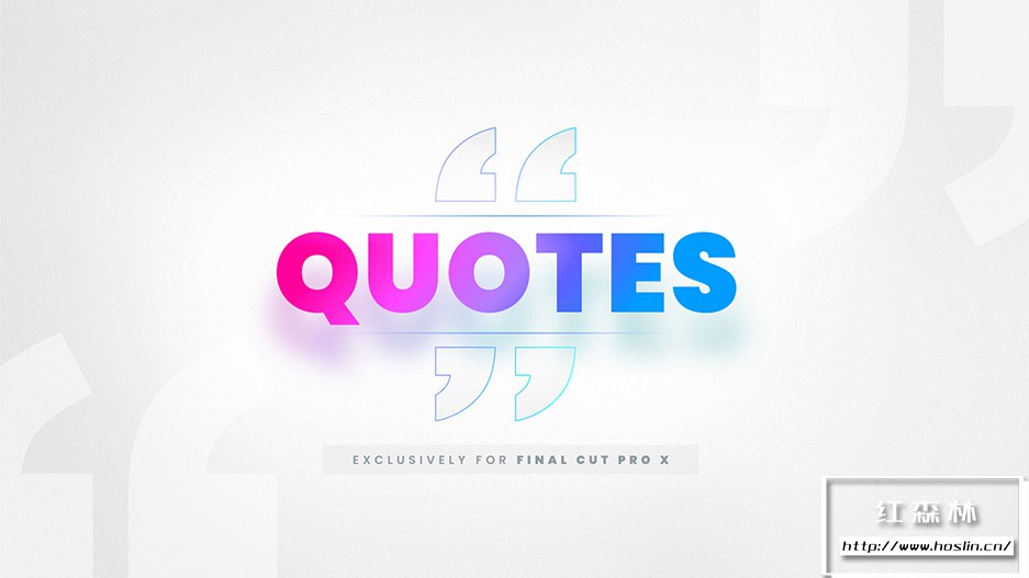Quotes 包含40组现代时尚引用段落介绍标题动画,非常适用于对象的简介、说明等段落文字,版面设计精致,兼容各类分辨率,可完全自定义颜色,缩放,大小,颜色等参数设置,这些预设可以帮助用户在视频编辑过程中轻松地添加引人注目的引号文字标题和字幕效果。