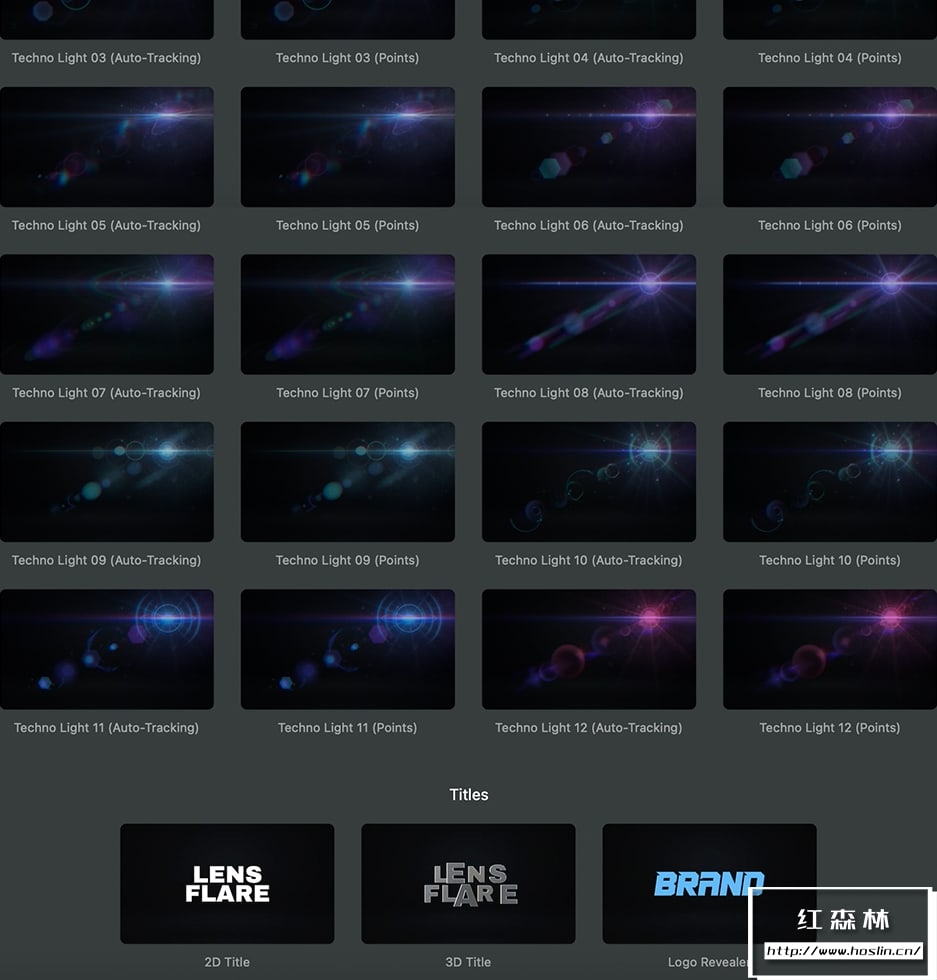 Century Creatives Lens Flare 拥有100多种镜头耀斑光效预设。类型:人工光效、基本光效、魔法光效、科技光效、自然光效等,可以根据项目的要求选择光效。还包含了3款3D文字动画预设,这些动画使用简单,只需拖放到时间线上进行必要的调整即可,点光源还可以设置跟踪点,包含演示视频教程。