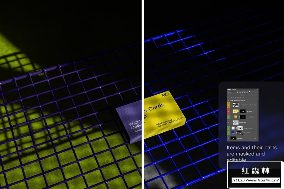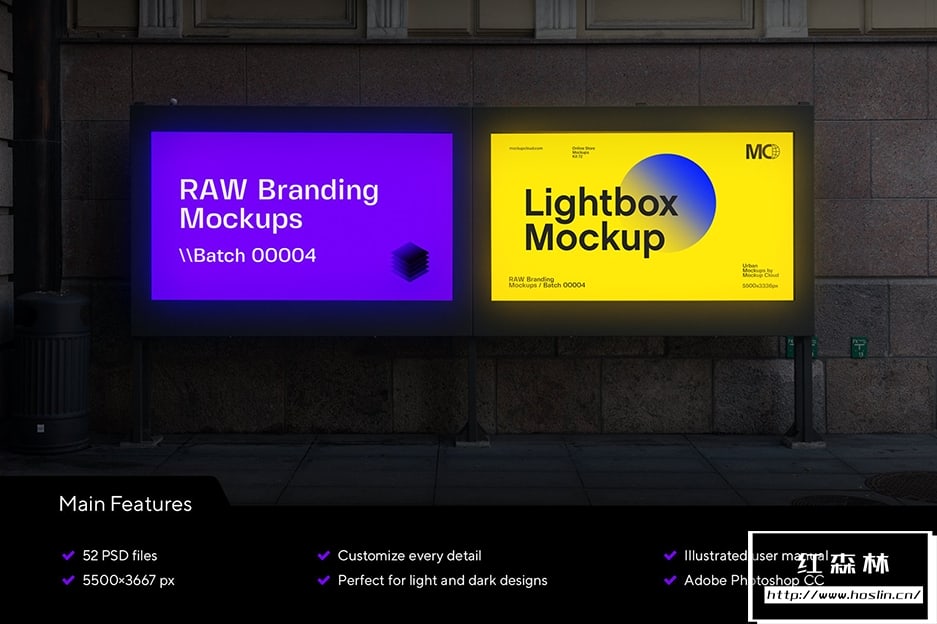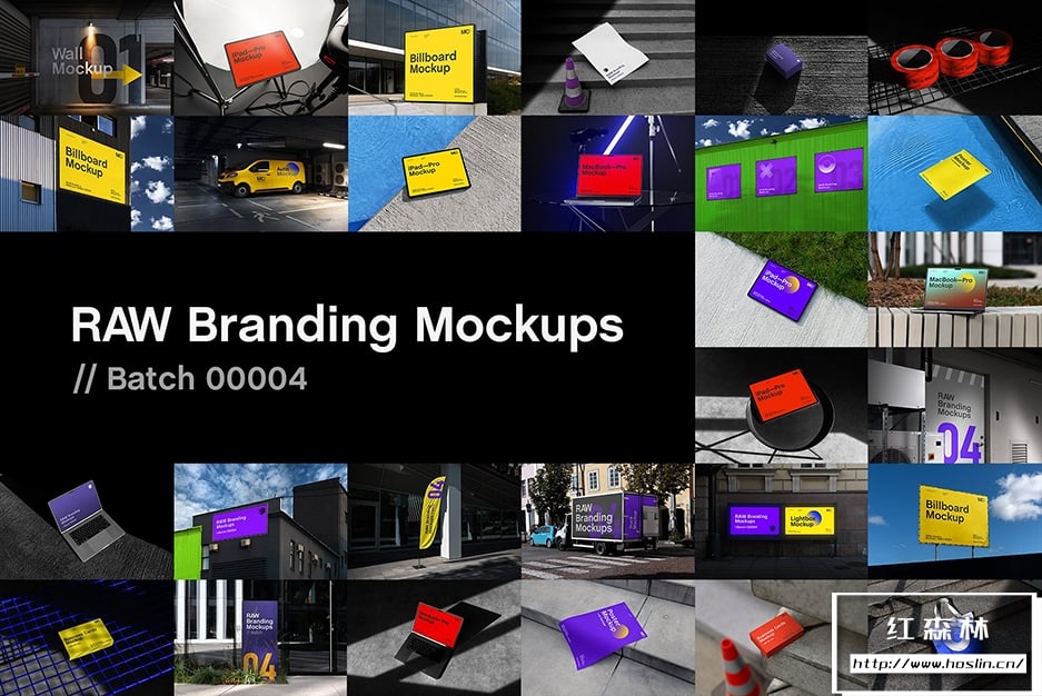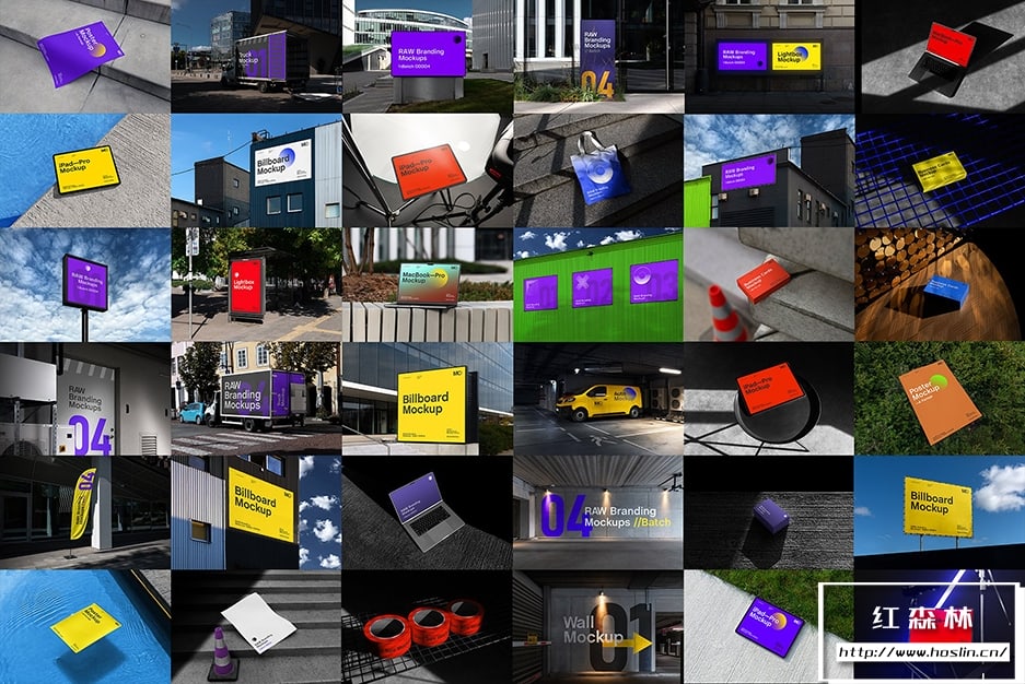 52 个高质量的真实环境照片模型,包括各种广告表面、墙壁、广告牌、屏幕、灯箱、汽车和标志。数字设备、iPad Pro 和 MacBook Pro。印刷材料、海报、信笺、名片、胶带和手提袋。