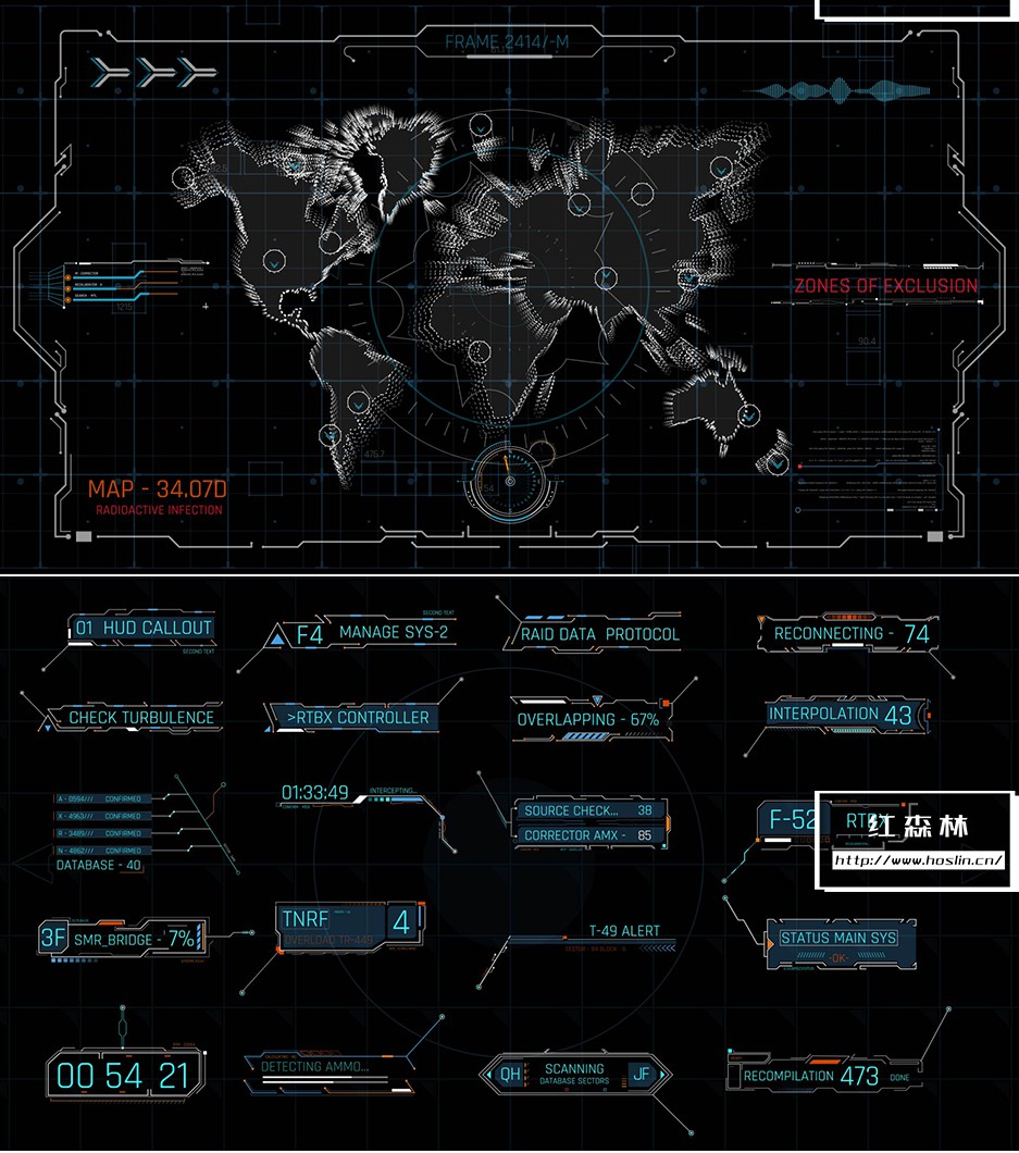 项目已更新到v1.6版本,拥有700多个现成的未来派图形元素、技术显示、图标、加载器、地图等等……华丽的设计和对每个元素的个性化方法使该套装成为创建您自己的梦幻界面的独特工具。非常适合未来派电影、视频、游戏、演示等。不需要任何额外的插件。该套件可立即使用。元素是基于矢量文件(不包括预渲染)制作的,这使得它们可以无限缩放而不会损失质量。您的作品可以是任何分辨率 – 质量将始终保持高水平!所有元素都有 alpha 透明通道。您只需将元素拖放到视频中即可获得结果!颜色控制允许您在两次点击中更改元素的颜色!免费更新将帮助您获得新的 HUD 元素,以创建现代和高品质的产品!所有元素都按组排列,您不难在项目中找到所需的元素。