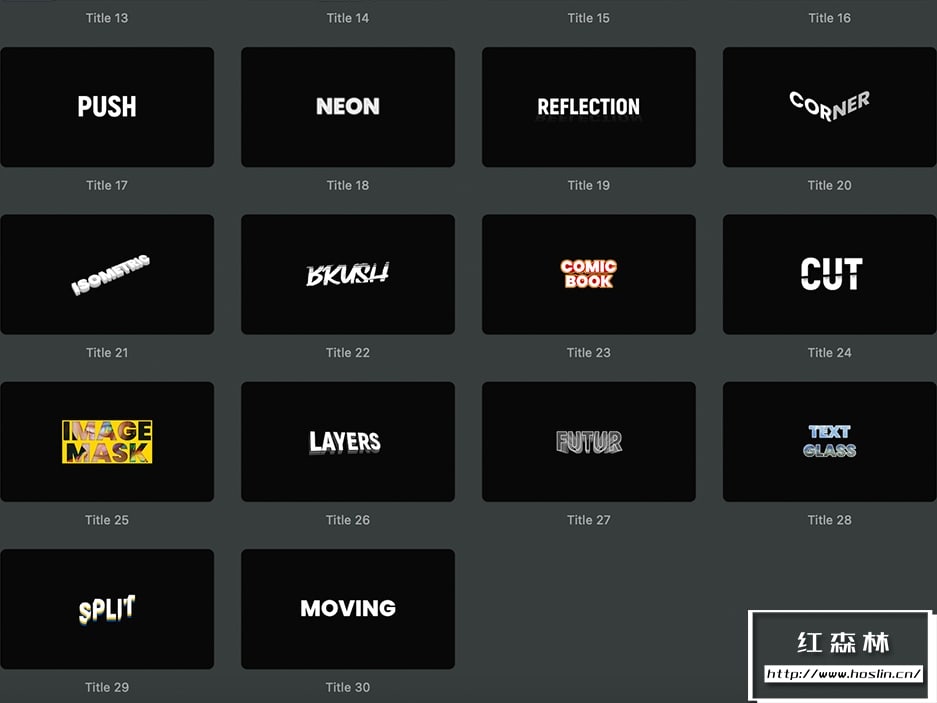 Creative Titles 拥有30个不同风格的文字标题动画。使用它您能够通过大量专业设计和可自定义的风格化标题来提升您的视频项目。无论您是制作商业内容、教育视频还是创意项目,该插件都提供了各种标题,为您的视频编辑工作增添专业和精致的感觉。Creative Titles每个动画都有更多参数来控制其独特的创意元素,例如形状扭曲、颜色、不透明度、大小和位置。所有标题都带有可以定制的背景效果。可以为独立标题卡打开彩色背景。可以将晕影、噪点、双色调、模糊和黑白等背景效果添加到背景素材中。