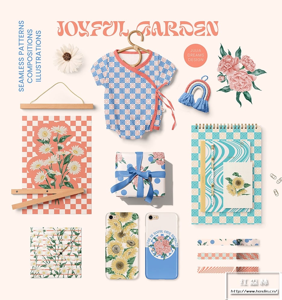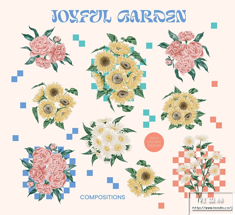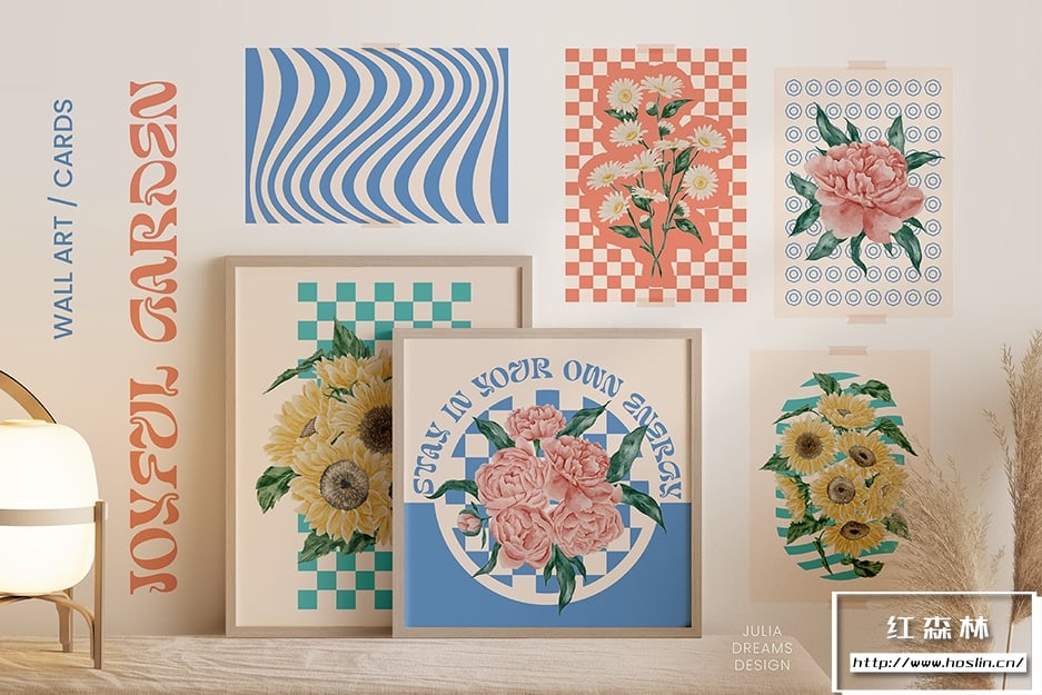 - 快乐花园系列非常适合徽标、海报、卡片、品牌、封面、礼品、社交媒体帐户、包装纸、壁纸、织物、剪贴簿、贴纸、网站、博客、邀请函等等!