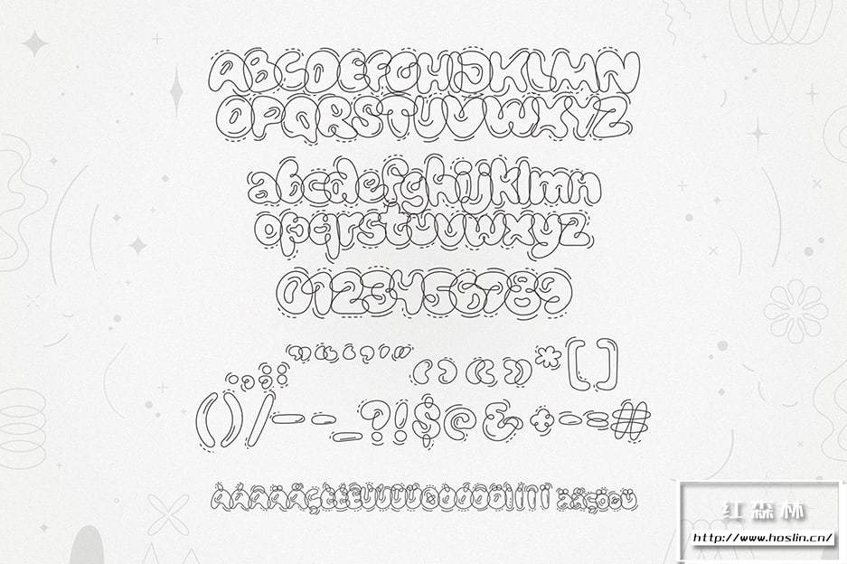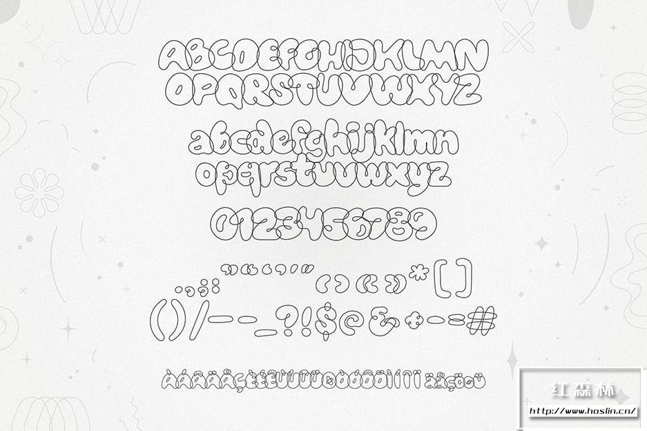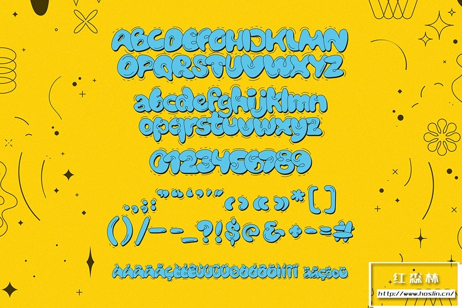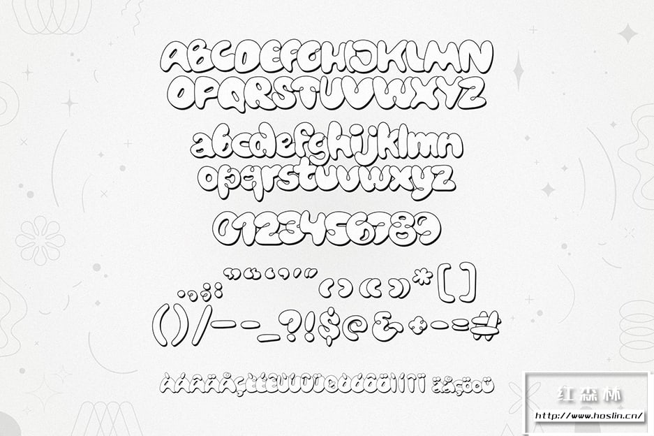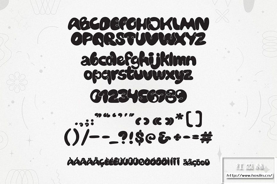 - Bubblicity Regular Special(OTF、大小写、数字、符号和标点符号、多语言)
