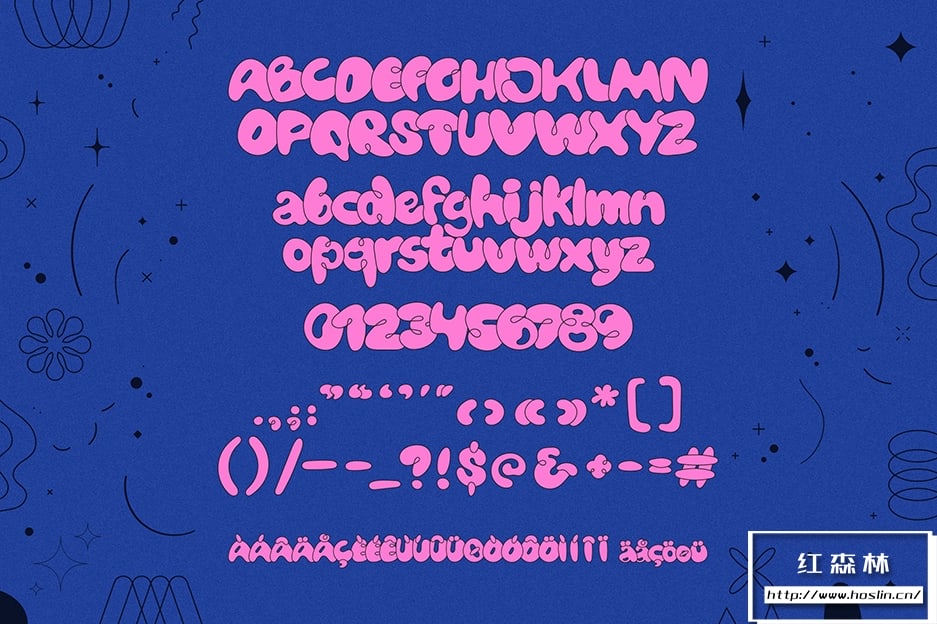 - Bubblicity Pinky(颜色 OTF、大小写、数字、符号和标点符号、多语言)