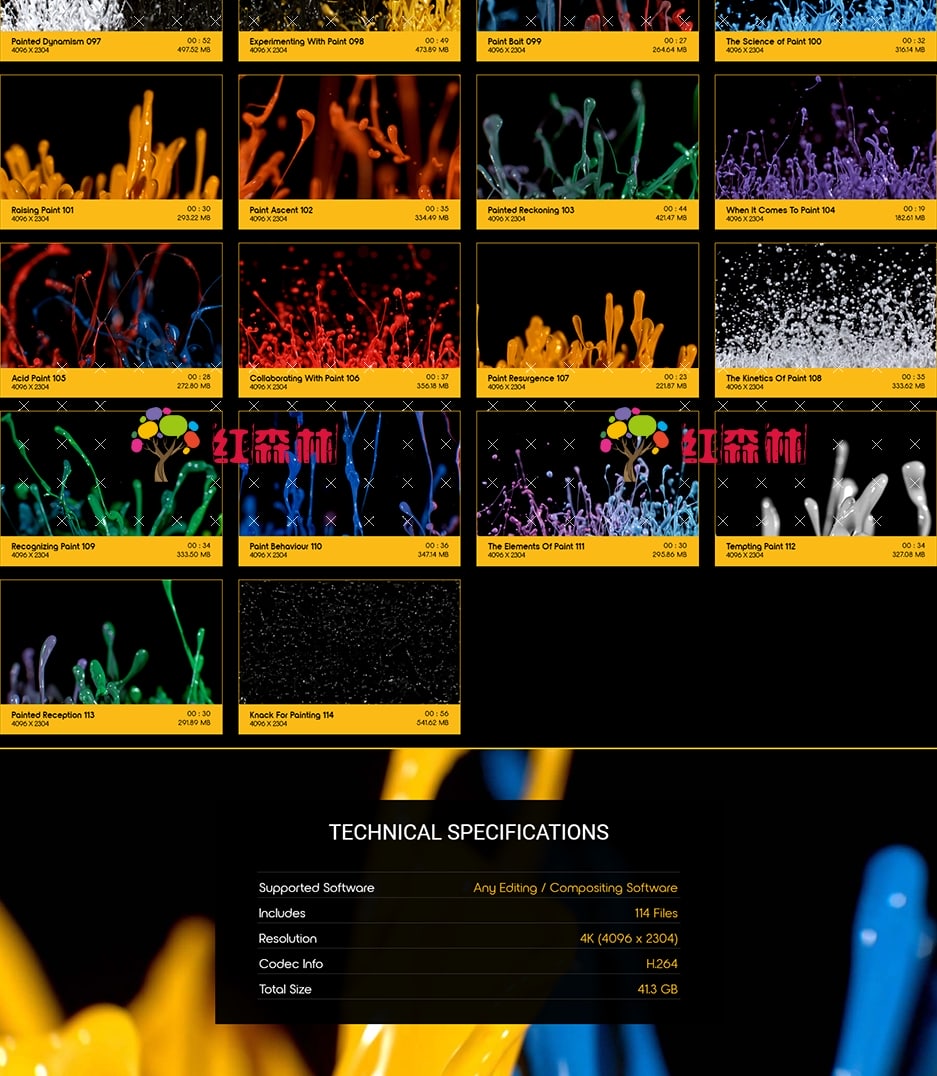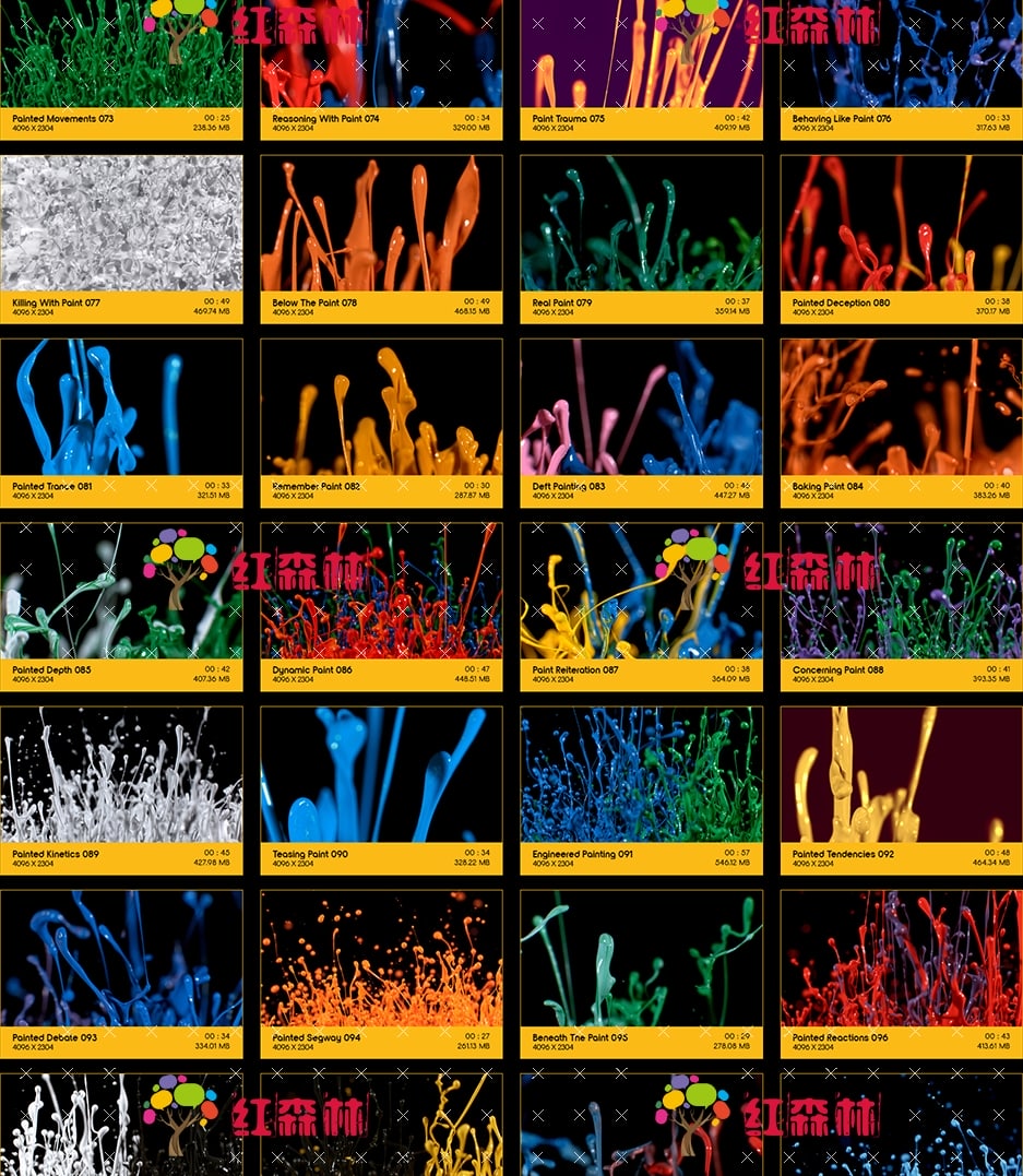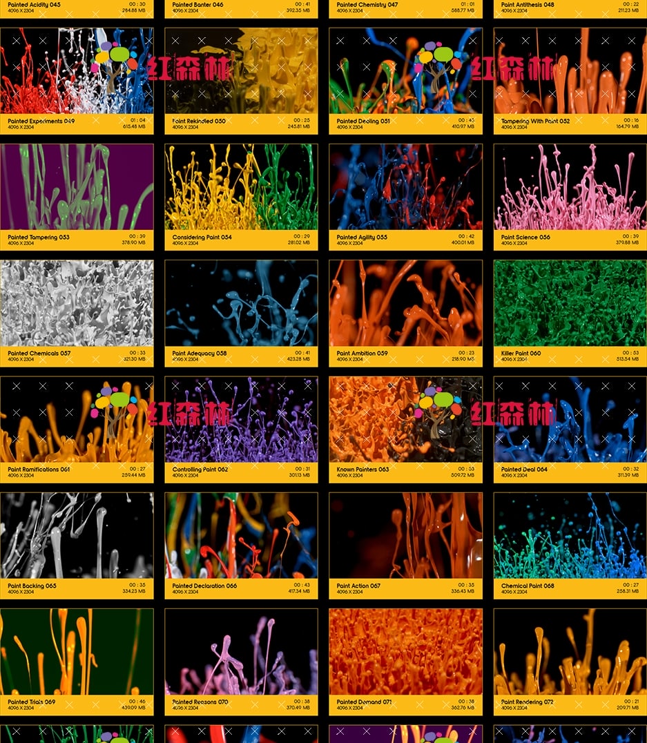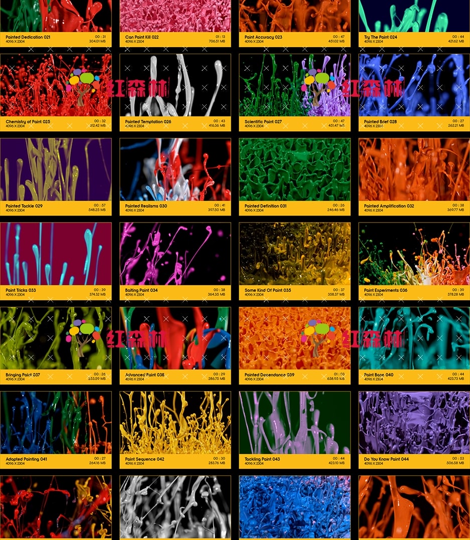 114个彩色油漆流体飞溅特写4K动画,瞬间创作艺术,异想天开的魅力,充满活力跳跃的效果,在剪辑中增添活力和有趣的情绪。 这些逼真的动画我们使用最新的Phantom 4K Flex相机进行有机拍摄。1000FPS 将在编辑时为您提供惊人的灵活性,使用这些剪辑为您的项目添加冲击力和强度。这些动画使用简单,只需拖放和混合。我们做了繁重的工作,以确保每个剪辑都易于您使用。无需任何插件,适用于VFX特效合成、画面叠加或背景中使用;增强画面观赏性。分辨率:4096*2304,4K高清;无透明通道(可修改混合模式去黑底透明叠加使用)。