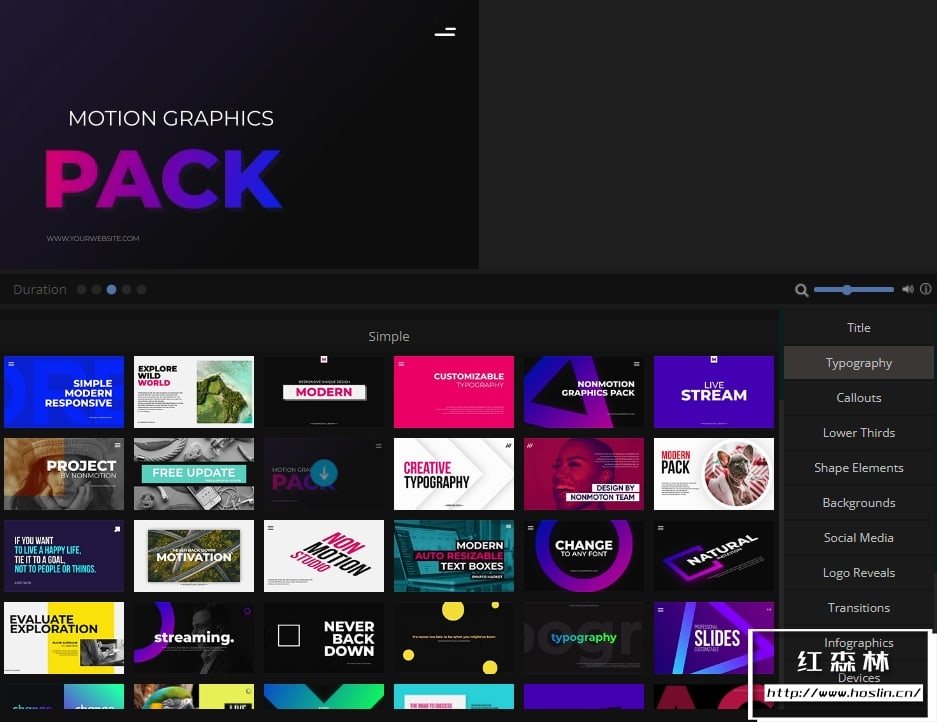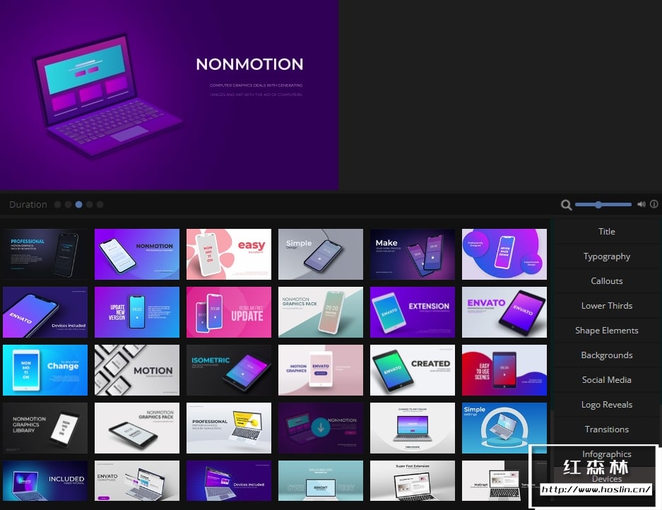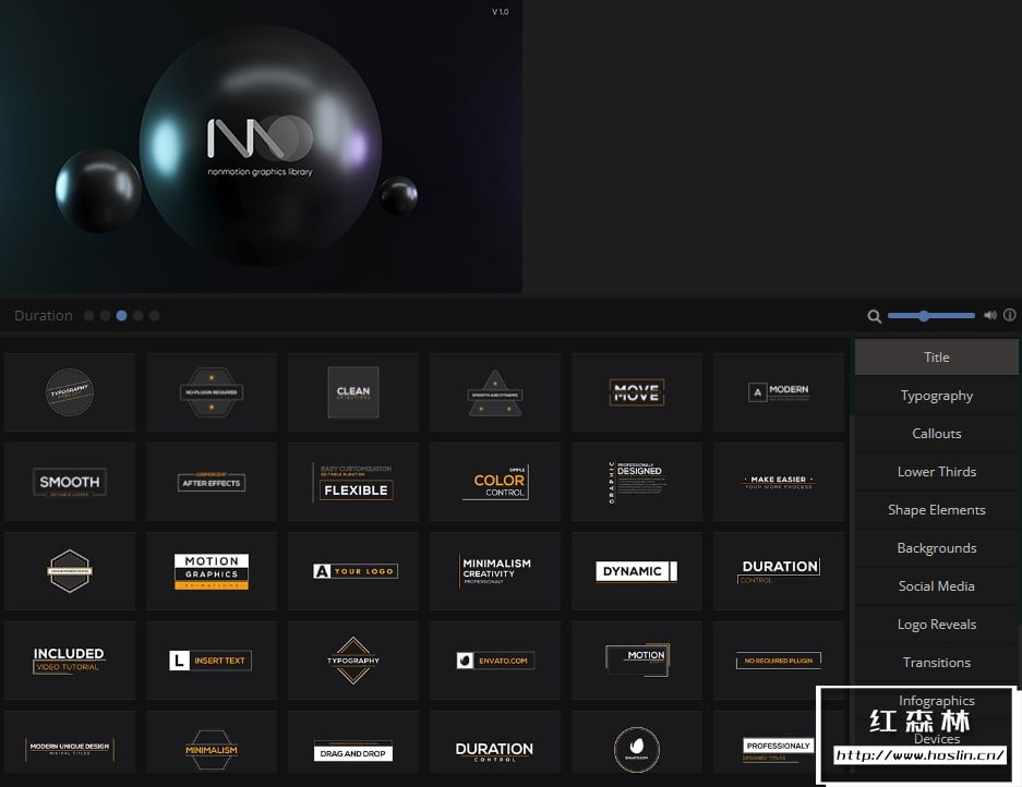Nonmotion Graphics Library 拥有1600组现代动态图形文字标题LOGO自媒体视频包装展示动画预设,包含:海报背景、表情符号、呼出线条标题、设备动画、LOGO动画、字幕条、循环图形动画等。可视化管理预览点击即可加载到时间线。支持任何分辨率,无需插件,响应式设计包含简单的视频教程。
