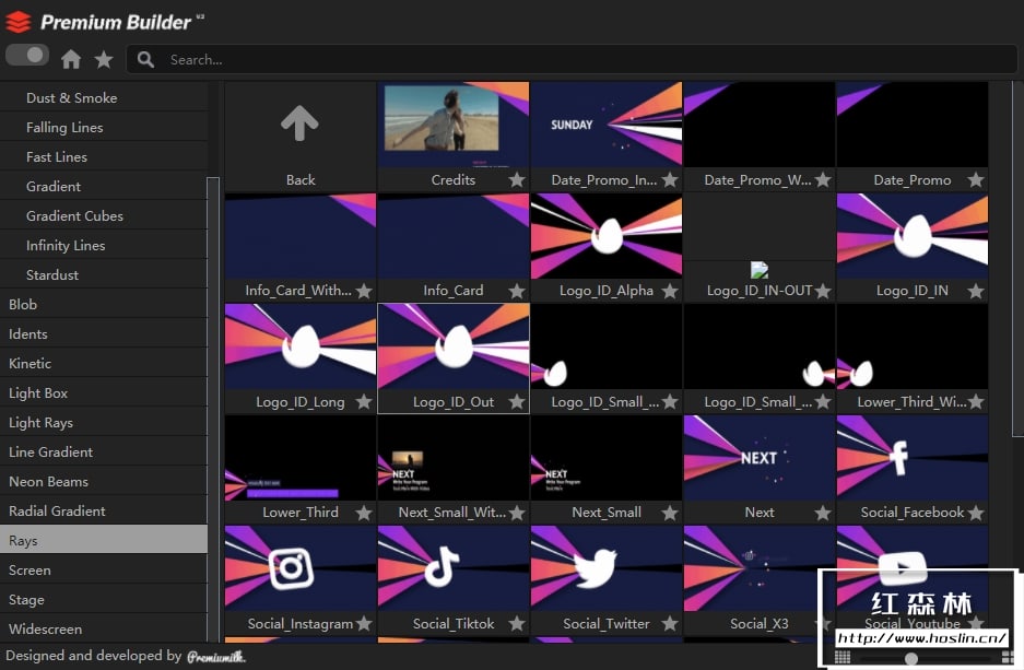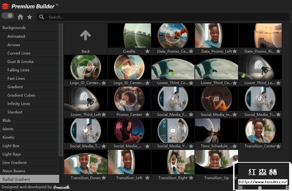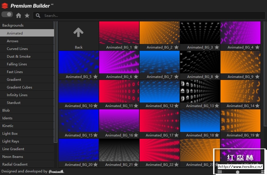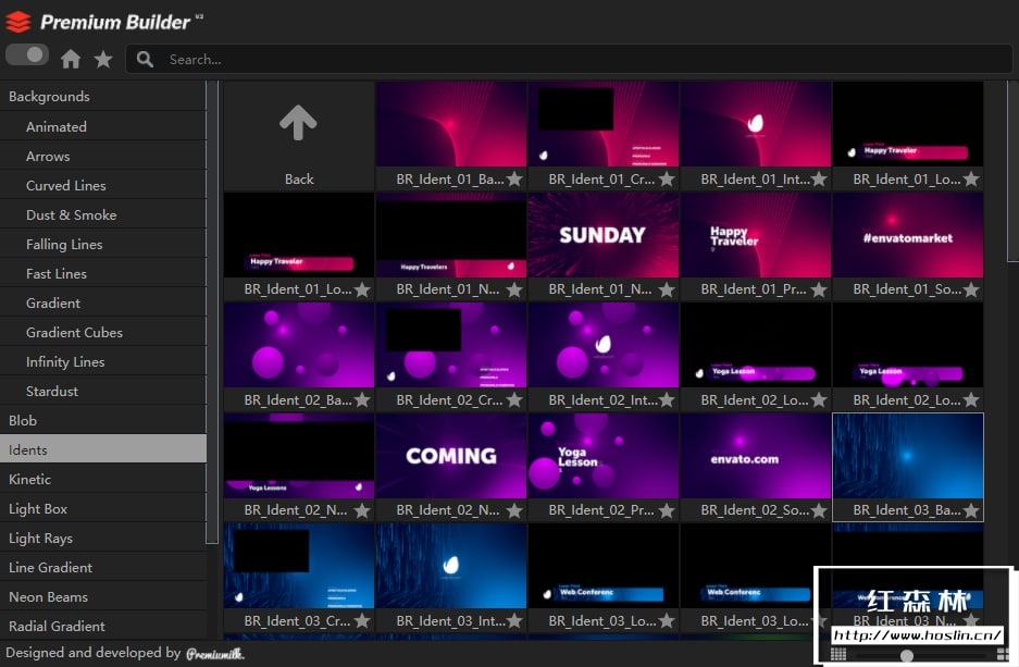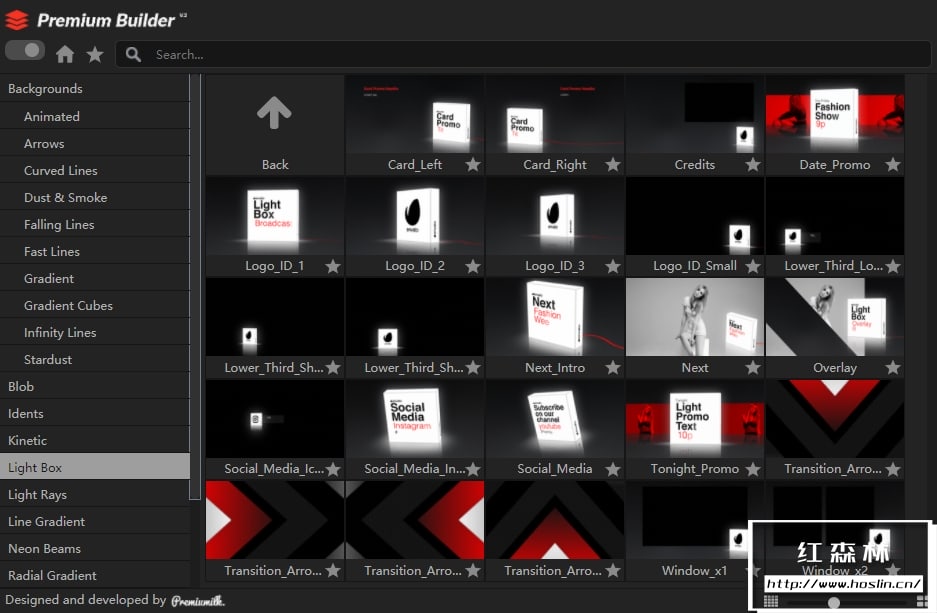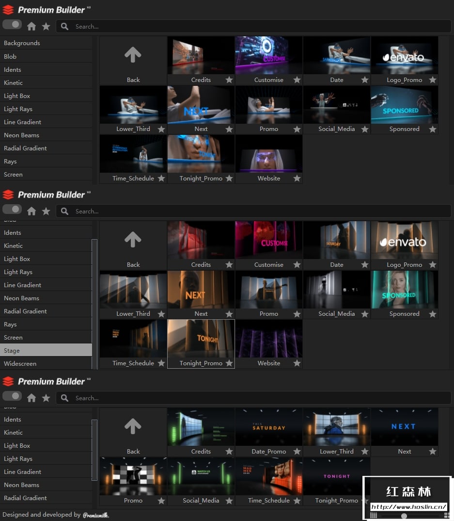 Broadcast Themes Pack 包含500多种现代抽象线条箭头图形渐变背景动画,可用于电视片头栏目包装动画元素。如:箭头图形、线条、粒子、光线、射线、舞台展示、Logo动画、产品盒子、渐变、图形遮罩等多种背景场景动画,由Premium Builder扩展脚本调用,可视化预览,需要哪个效果直接生成即可,十分简单,所有的文字,字体,颜色,Logo等基本参数都可以修改。包含类别:背景动画、背景箭头、背景曲线、背景灰尘和烟雾、背景下落的线条、背景快线、背景渐变、背景渐变立方体、背景无限线、背景星尘、广播主题 Blob、广播主题标识、广播主题动能、广播主题灯箱、广播主题光线、广播主题线渐变、广播主题霓虹灯、广播主题径向渐变、广播主题射线、广播主题画面、广播主题舞台、广播主题宽屏等。